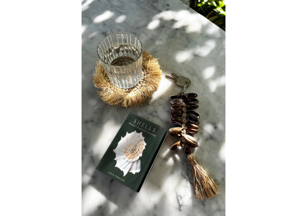 Apportez une touche de luxe bohème à votre quotidien avec ce porte-clés en raffia, orné de coquillages. Idéal pour suspendre à un crochet d'entrée, sur une poignée de porte, ou comme accessoire décoratif, chaque pièce est unique et fait un cadeau parfait.