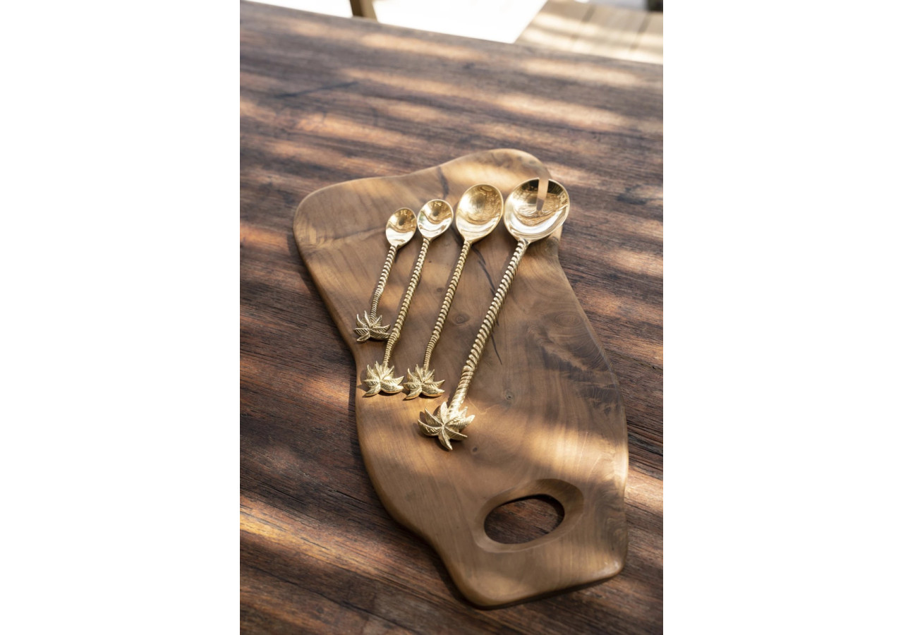 La Cuillère Longue THE PALM TREE de notre collection de couverts est un véritable symbole de luxe. Fabriquée en laiton massif, elle se distingue par ses détails raffinés et son poids impressionnant. Décorée d'un palmier, elle apporte une ambiance tropicale à votre table, idéale pour émerveiller vos invités.