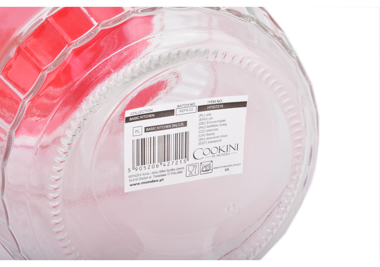 Le récipient en verre BASIC KITCHEN de 2,0 L est un accessoire indispensable pour votre cuisine. Pratique et élégant, il est parfait pour stocker vos aliments et plats préparés. Avec son couvercle en plastique, ce récipient assure une conservation optimale tout en ajoutant une touche de style à votre cuisine. Facile à nettoyer, il est conçu pour durer.