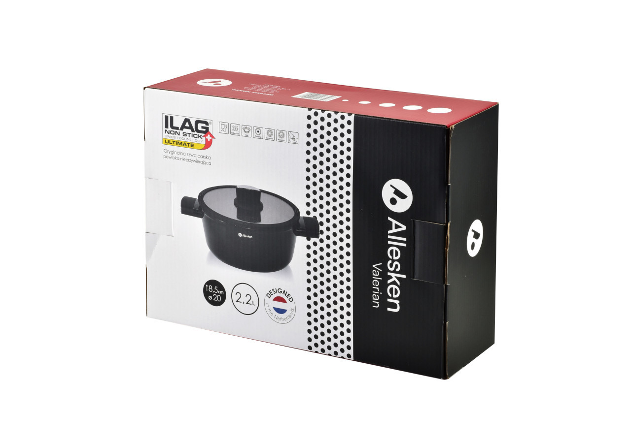 Découvrez le Garnek VALERIAN de la marque ALLESKEN, conçu en aluminium résistant et capable de supporter des températures allant jusqu'à 160°C. Son revêtement ILAG Ultimate NON STICK, à trois couches, garantit une cuisson sans adhérence pour des plats parfaitement réussis.