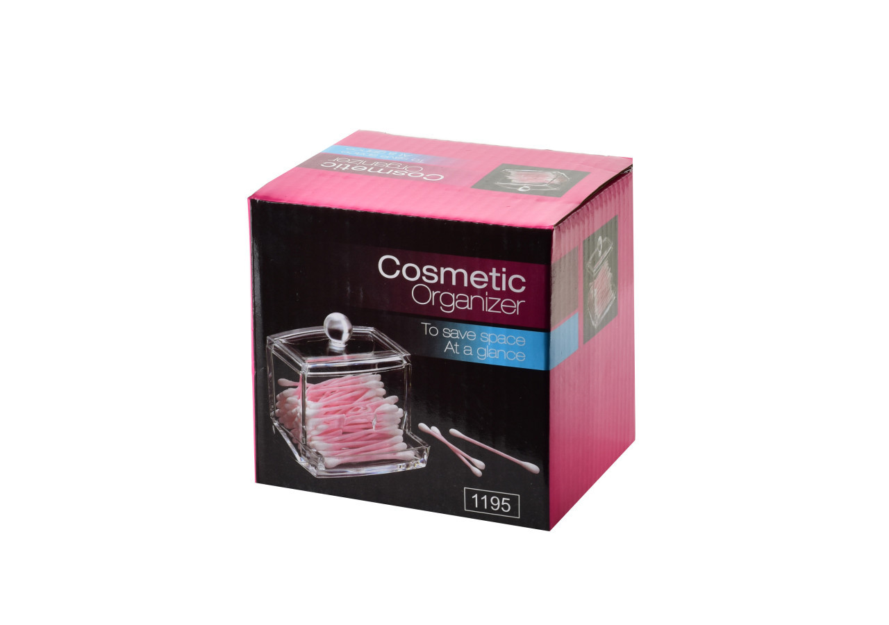 Le distributeur de cotons BEA en acrylique avec couvercle en bambou est l'accessoire parfait pour votre salle de bain. Compact (8,5 x 5,5 x 8,5 cm), il garde vos cotons bien rangés et à portée de main.