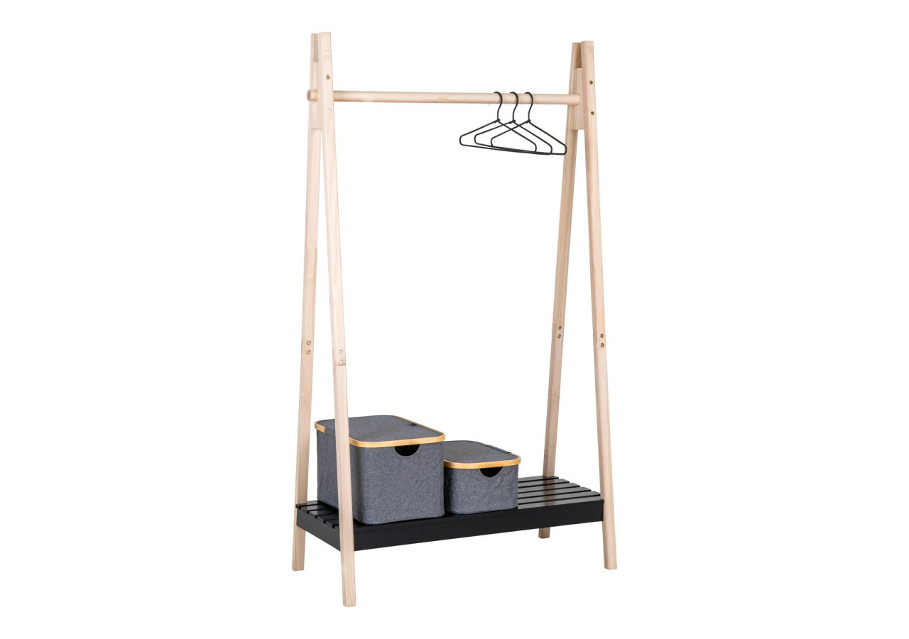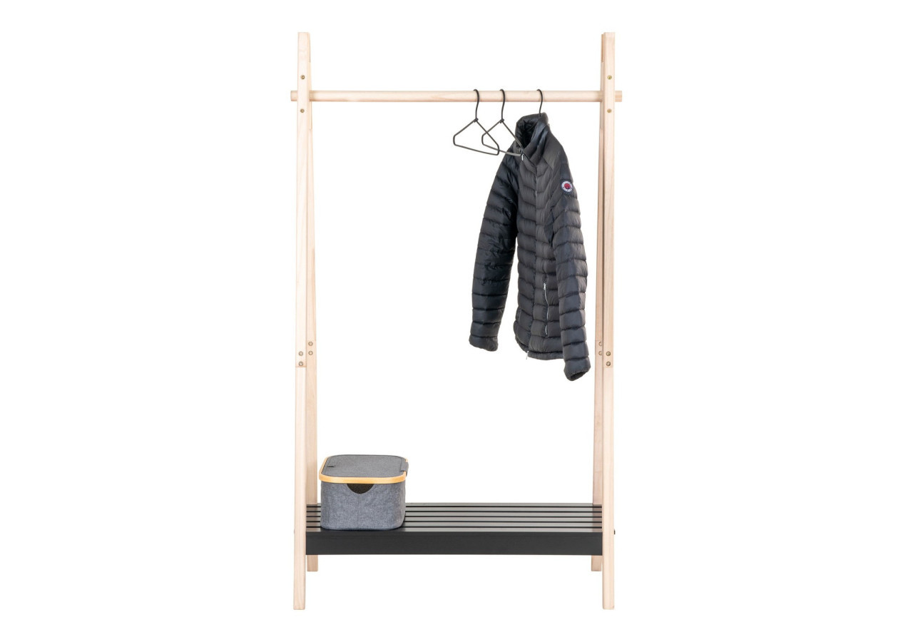 Le portant TORINO allie fonctionnalité et style avec son design en bois naturel et noir. Idéal pour organiser vos vêtements tout en apportant une touche de chaleur à votre décoration intérieure.