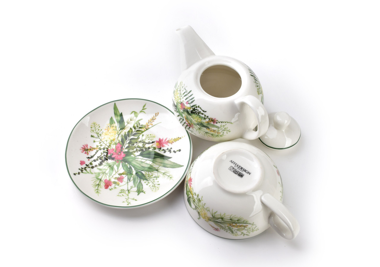 Profitez d'un moment de détente avec ce service Tea for One en porcelaine de la série IDYLLIC par AFFEKDESIGN by MONDEX. Parfait pour savourer votre thé préféré dans un beau design printanier.