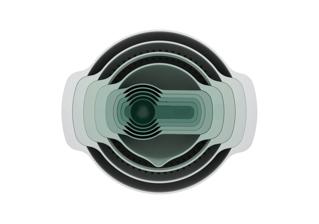 Organisez votre cuisine avec le Set de bols Nest 9 Plus de Joseph Joseph. Cette ensemble de 9 pièces comprend 2 grands bols, un tamis, un passoire et 5 cuillères à mesurer, tous empilables pour un gain de place optimal. Le grand bol de 4,5 litres est doté d'un fond antidérapant et de poignées larges, tandis que le plus petit a une indication de mesure et un bec verseur. Fabriqués en plastique sans BPA, tous les éléments passent au lave-vaisselle pour un nettoyage facile.
