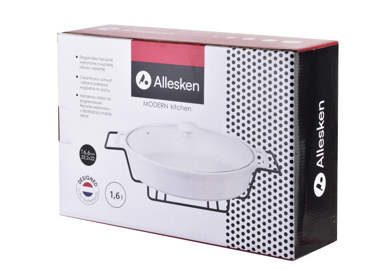 Optez pour cet naczynie de la série MODERN KITCHEN d'Allesken, d'une capacité de 1,6L et mesurant 33,2x22xh6,6cm, idéal pour servir vos plats tant quotidiens que festifs. Son coloris blanc lisse et son support en acier chromé apportent une touche d'élégance à votre table.