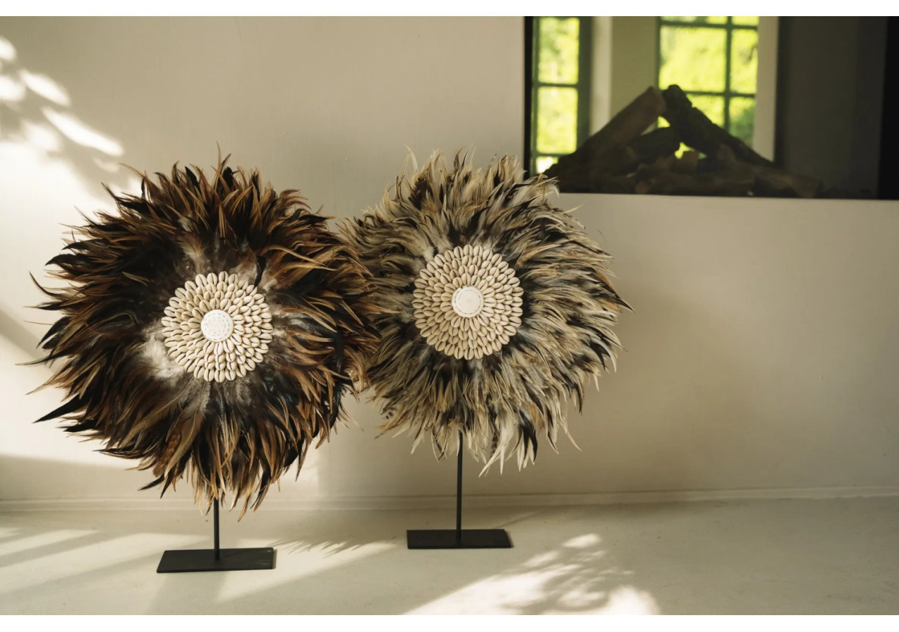 Ajoutez une touche bohème à votre espace avec le Juju Côtier sur Support. Cette magnifique pièce décorative est parfaite pour embellir n'importe quel coin de votre maison, terrasse ou jardin. La centrale circulaire est entourée de coquillages minutieusement disposés, créant un effet visuel saisissant.