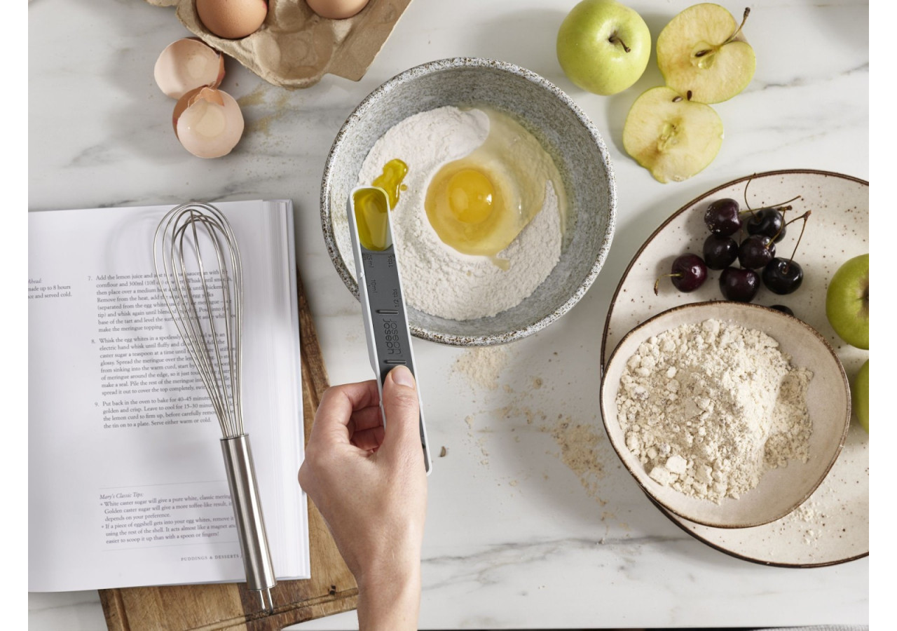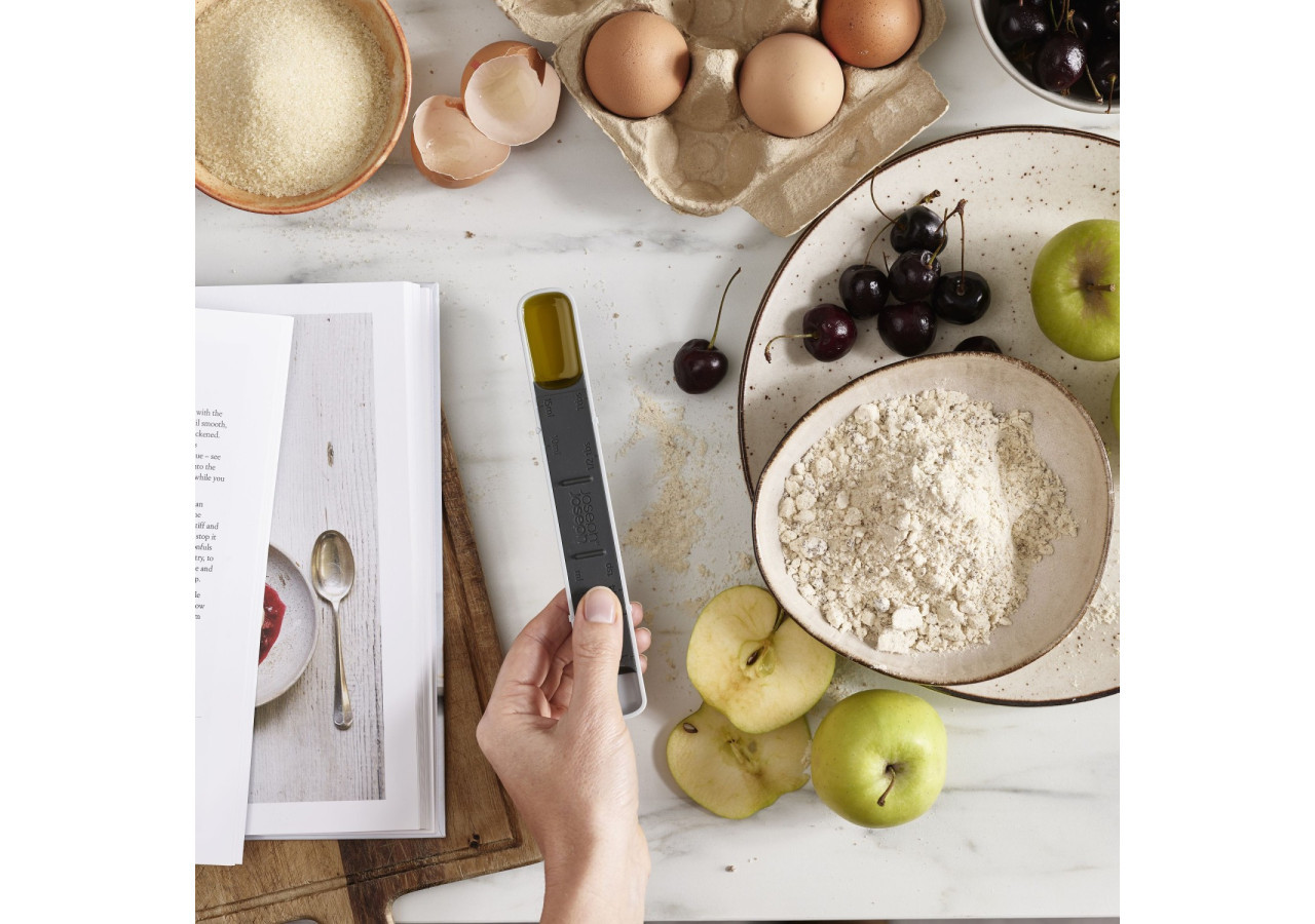 La Cuillère Doseuse Measure-Up de Joseph Joseph rend la mesure des ingrédients un jeu d'enfant. Réglable de 5 à 15 ml, elle est parfaite pour toutes vos recettes, qu'elles soient liquides ou solides.