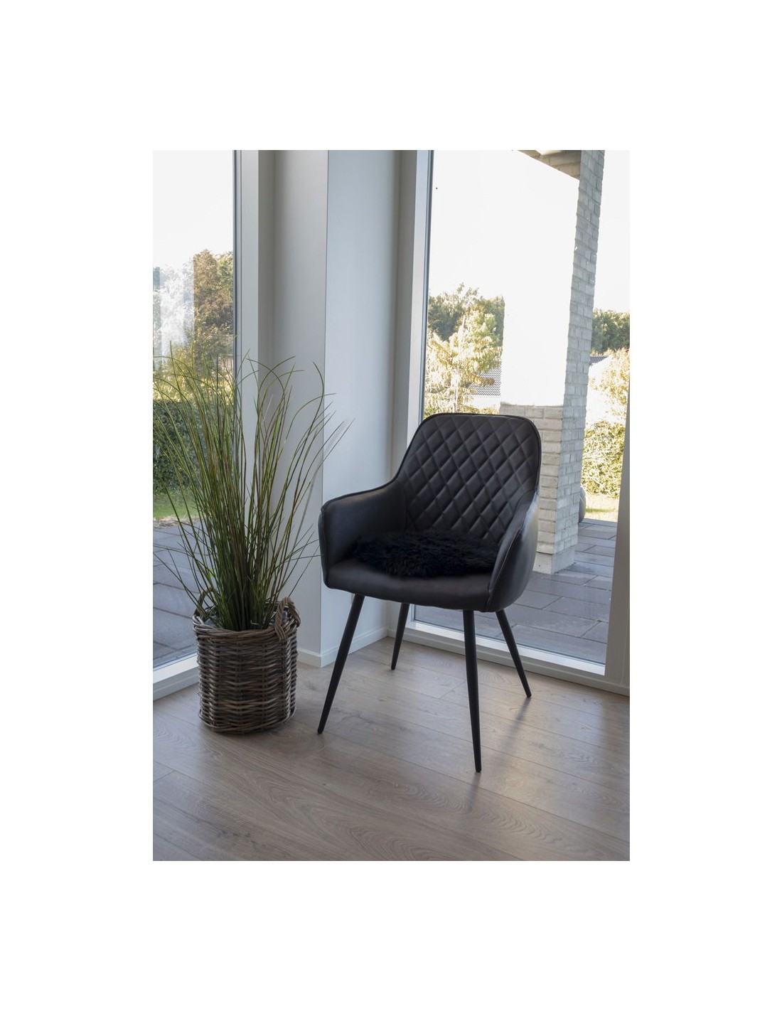 Ce siège en peau de mouton noir de 35 cm apporte une touche moderne à votre intérieur. Idéal pour se détendre après une longue journée.