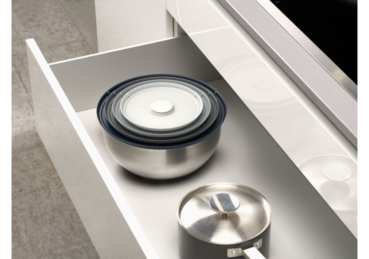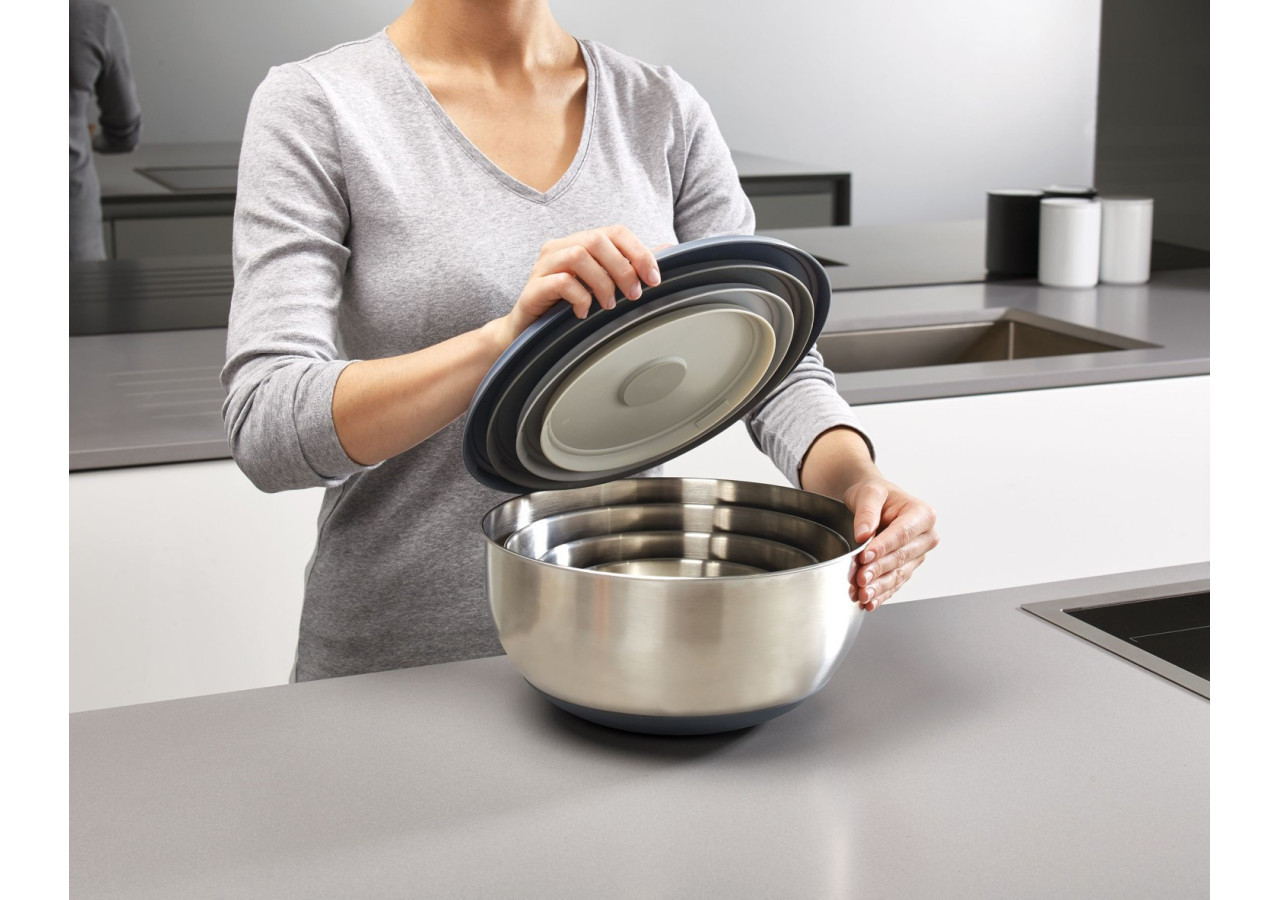 Le set de 4 bols Prep & Store de Joseph Joseph vous accompagne dans la préparation et la conservation de vos plats. Fabriqués en acier inoxydable, chaque bol est équipé d'un couvercle en plastique et d'une base antidérapante pour plus de stabilité. Empilables pour gagner de la place, ils sont également faciles à nettoyer au lave-vaisselle.