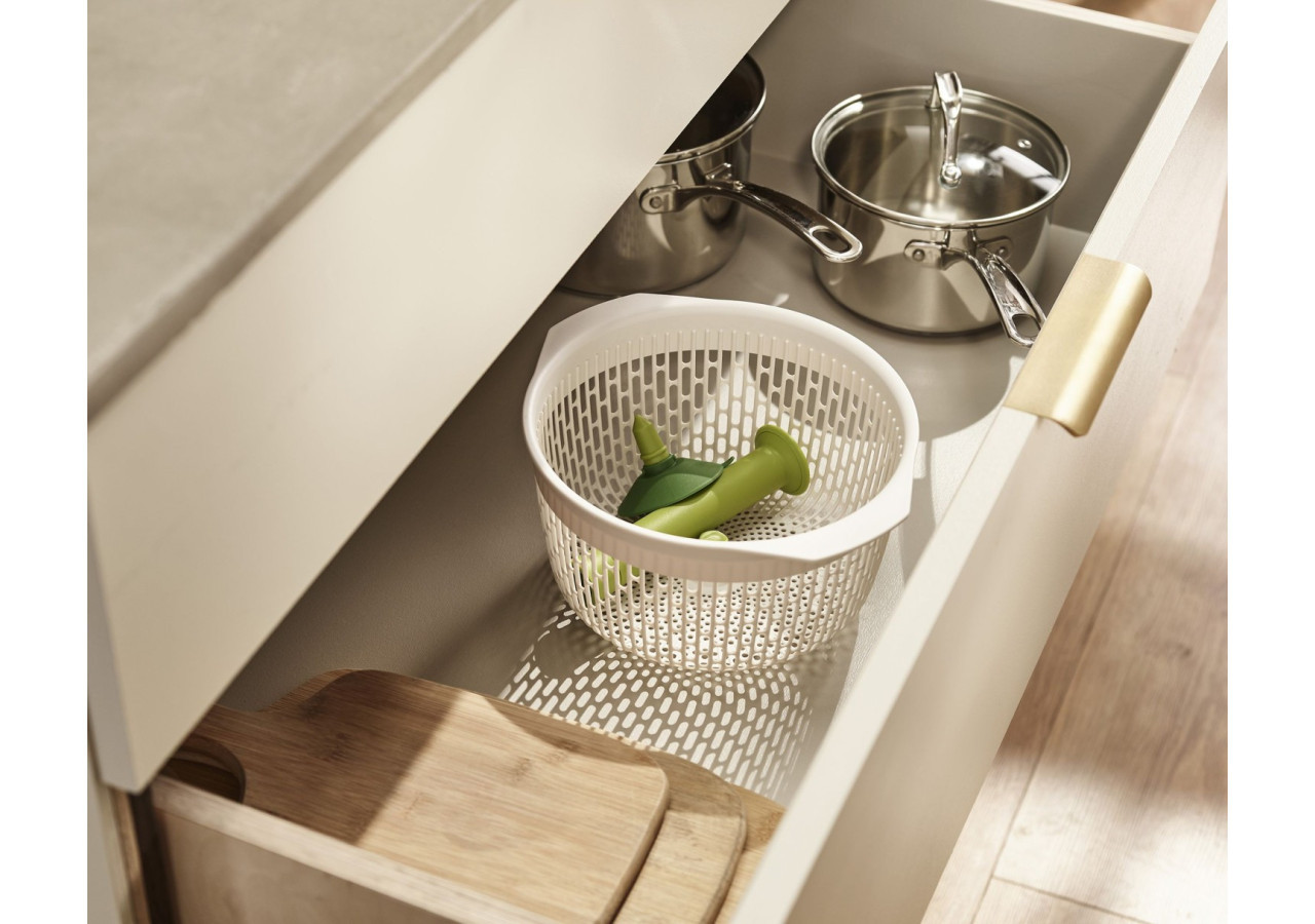 La Spindola de Joseph Joseph est un outil de cuisine révolutionnaire qui allie centrifugeuse à salade et passoire en un seul appareil. Fabriquée en acier inoxydable durable avec un pied anti-dérapant, elle assure une stabilité parfaite lors de son utilisation.