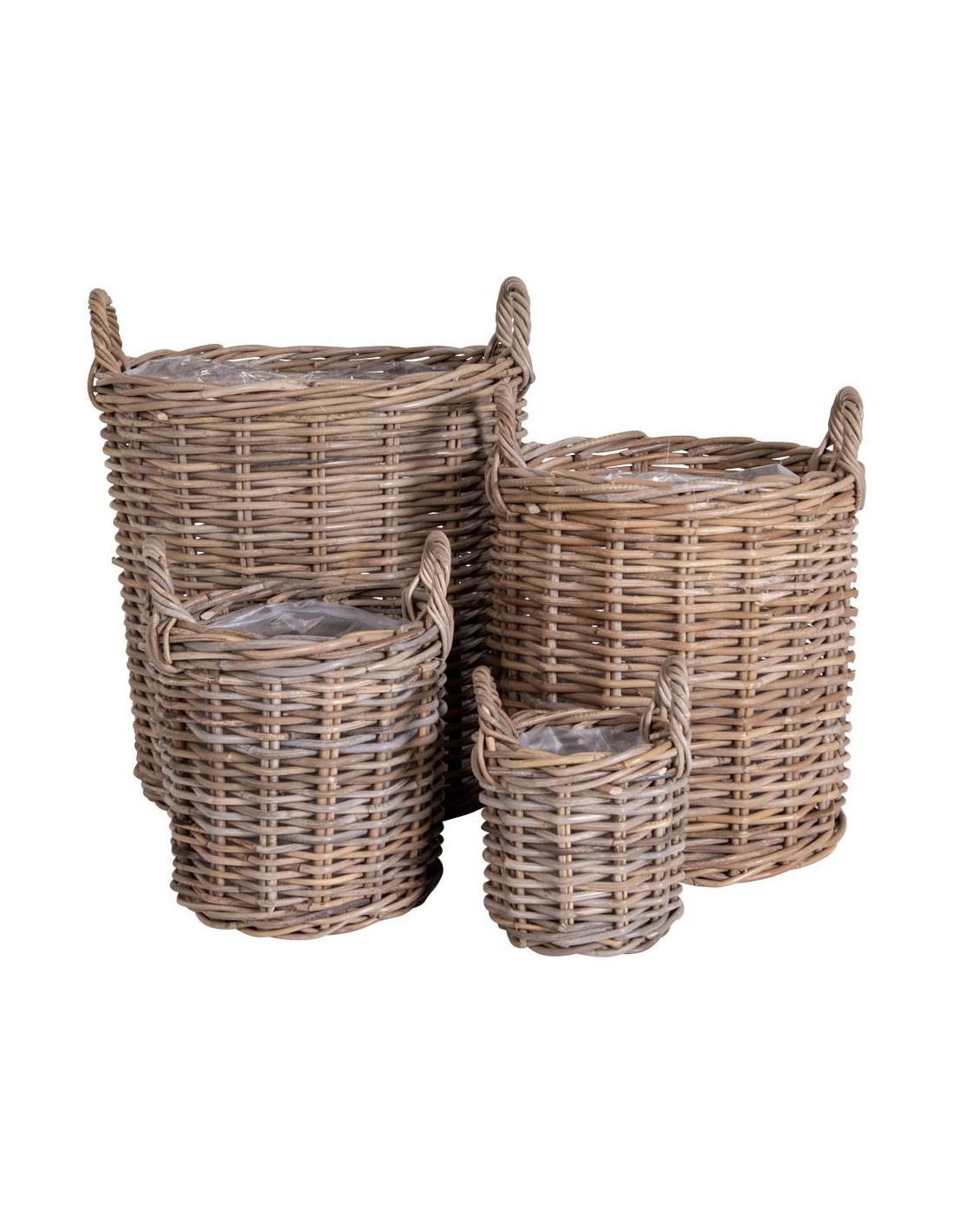 Optimisez votre rangement avec les bacs Caor. Cet ensemble de 4 bacs ronds en rattan kubu est équipé de poignées pratiques et d'une doublure en plastique pour une utilisation facile. Parfaits pour organiser divers objets, ces bacs allient esthétique et praticité.