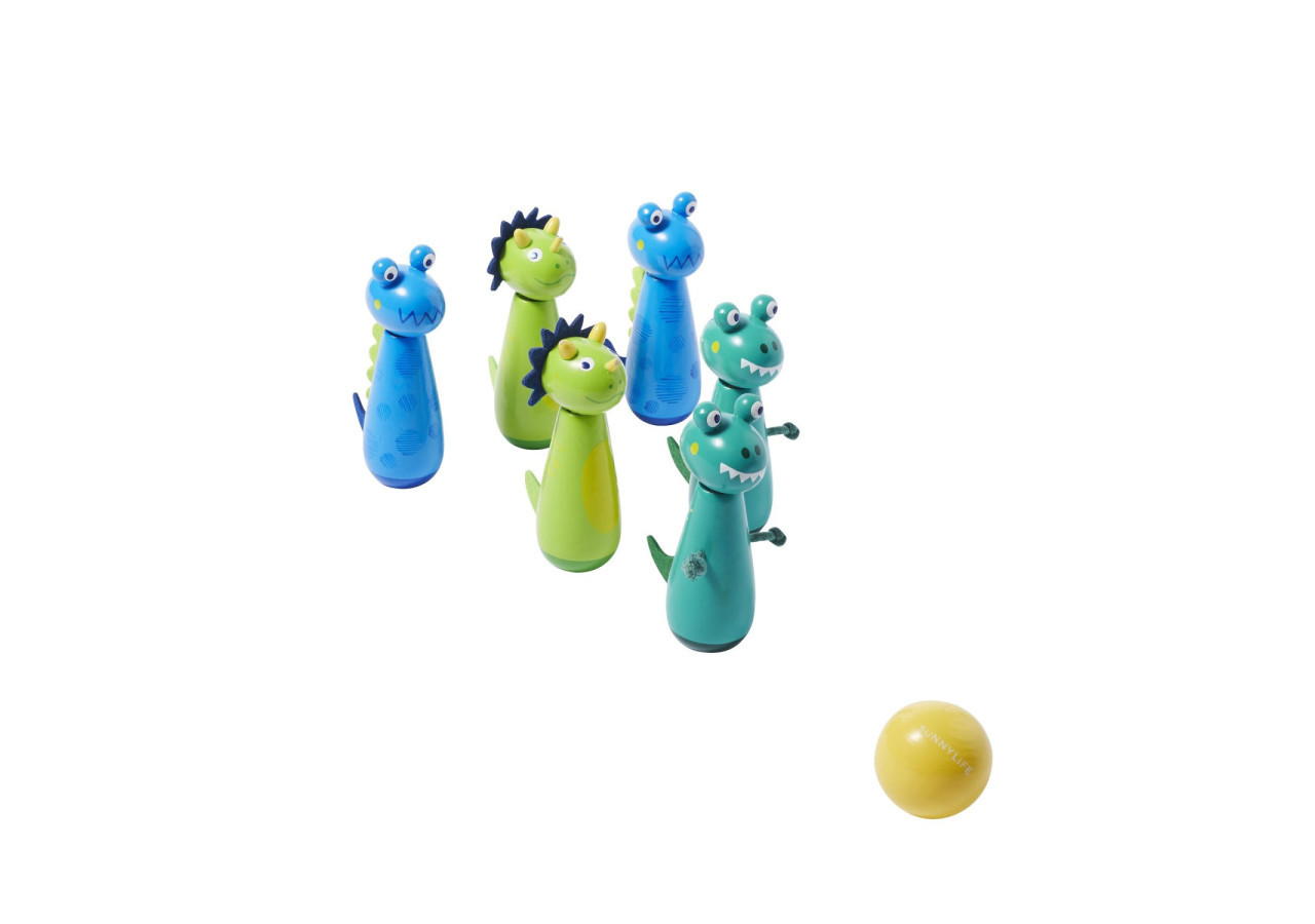 Offrez à vos enfants le Set de Quilles Dino de Sunnylife, une manière ludique d'améliorer leurs compétences motrices. Composé de 6 figurines de dinosaures colorées, ce jeu est idéal pour les enfants dès 3 ans.