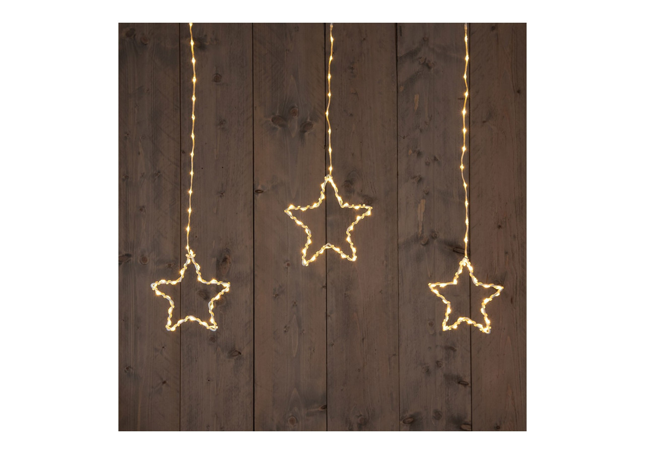 Ajoutez une touche féerique à votre intérieur avec ce rideau lumineux en forme d'étoiles. Composé de 186 LED et mesurant 90x80cm, il crée une ambiance chaleureuse avec son transformateur IP44 et son timer.