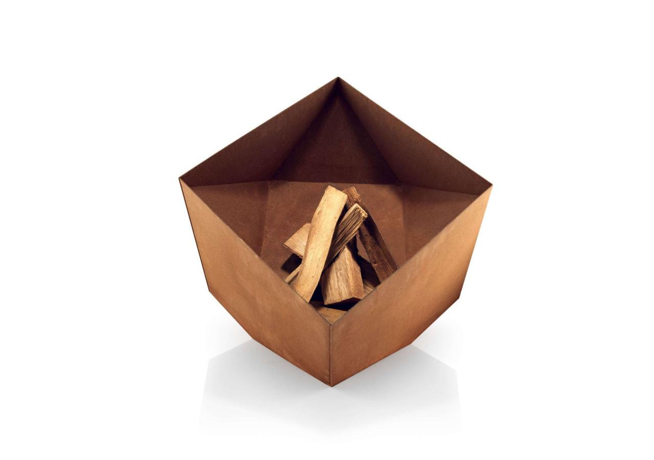 Découvrez le FireCube Barbecue Vuurschaal, une véritable œuvre d'art pour votre jardin ou terrasse. Fabriquée en cortenstaal, cette cheminée sculpturale peut être positionnée de deux manières : soit debout, soit inclinée, offrant ainsi une protection contre le vent tout en apportant une touche esthétique unique. Conçue pour résister aux intempéries, cette cheminée embellira votre espace extérieur tout au long de l'année. Avec le temps, elle développera une patine naturelle qui accentuera son charme. En option, un gril peut être ajouté pour transformer votre foyer en barbecue. Dimensions : 45 x 45 x 45 cm.