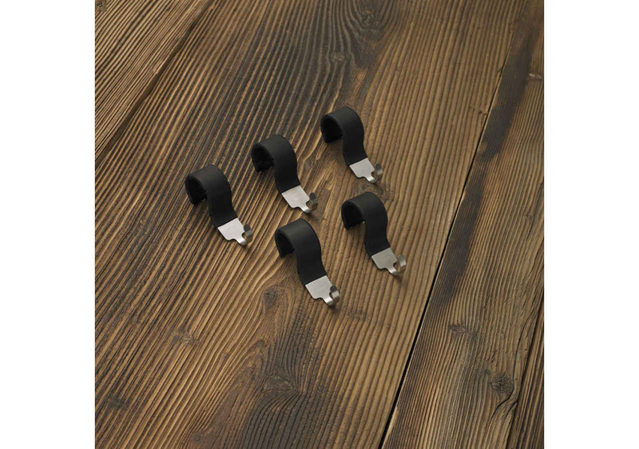 Avec ce set de 5 crochets de Rösle, gardez vos ustensiles à portée de main lors de vos barbecues. Fabriqués en inox avec des éléments en silicone, ils s'adaptent à la rail d'accrochage Rösle, vous offrant une solution de rangement élégante et pratique.