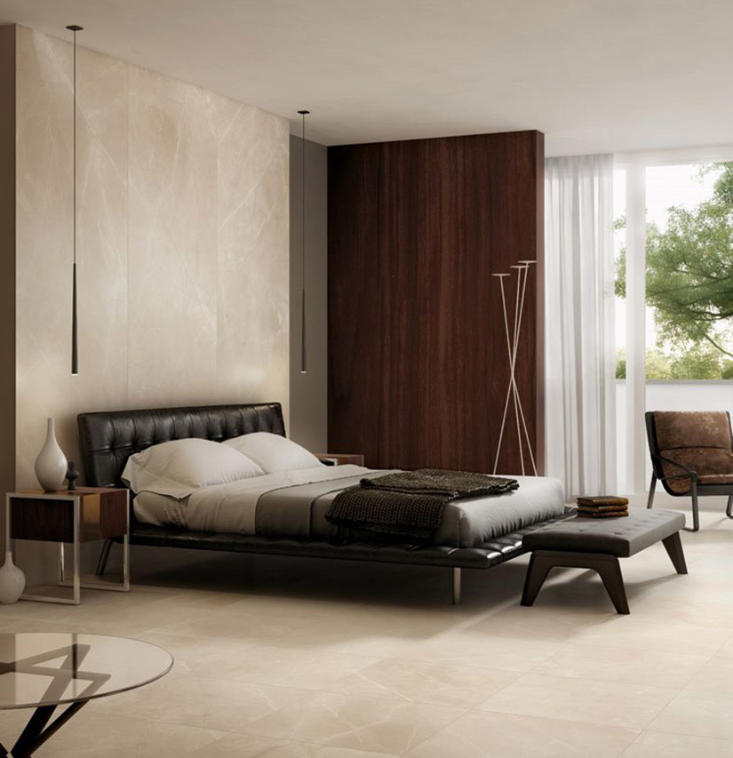 Des surfaces précieuses animées par des effets reprenant les nervures du marbre dans des tons clairs et foncés