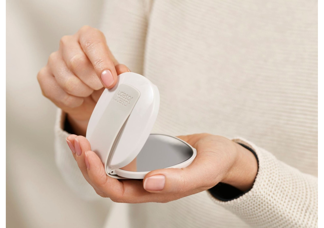 Assurez-vous que votre maquillage est parfait avec le miroir de poche 2-en-1 Viva de Joseph Joseph. Il comprend un miroir standard pour une vue d'ensemble et un miroir grossissant 3x pour les détails. Grâce à sa fermeture magnétique et sa bandoulière en silicone, il est à la fois pratique et sécuritaire à transporter.