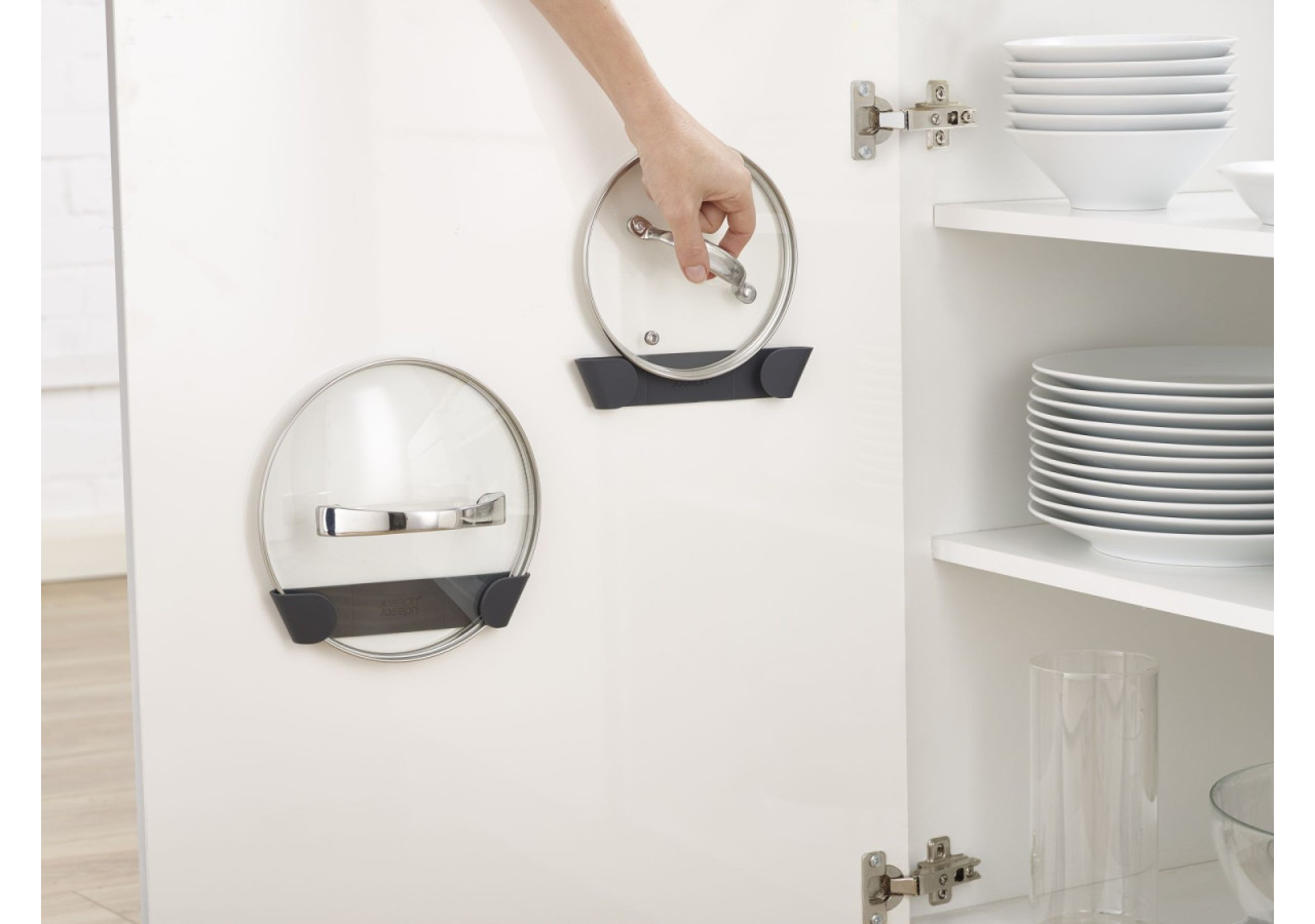 Réorganisez votre cuisine avec le Set de 4 Organisateurs de Couvercles CupboardStore de Joseph Joseph. Fini le désordre, ces supports se fixent facilement à l'intérieur de vos placards sans outils.