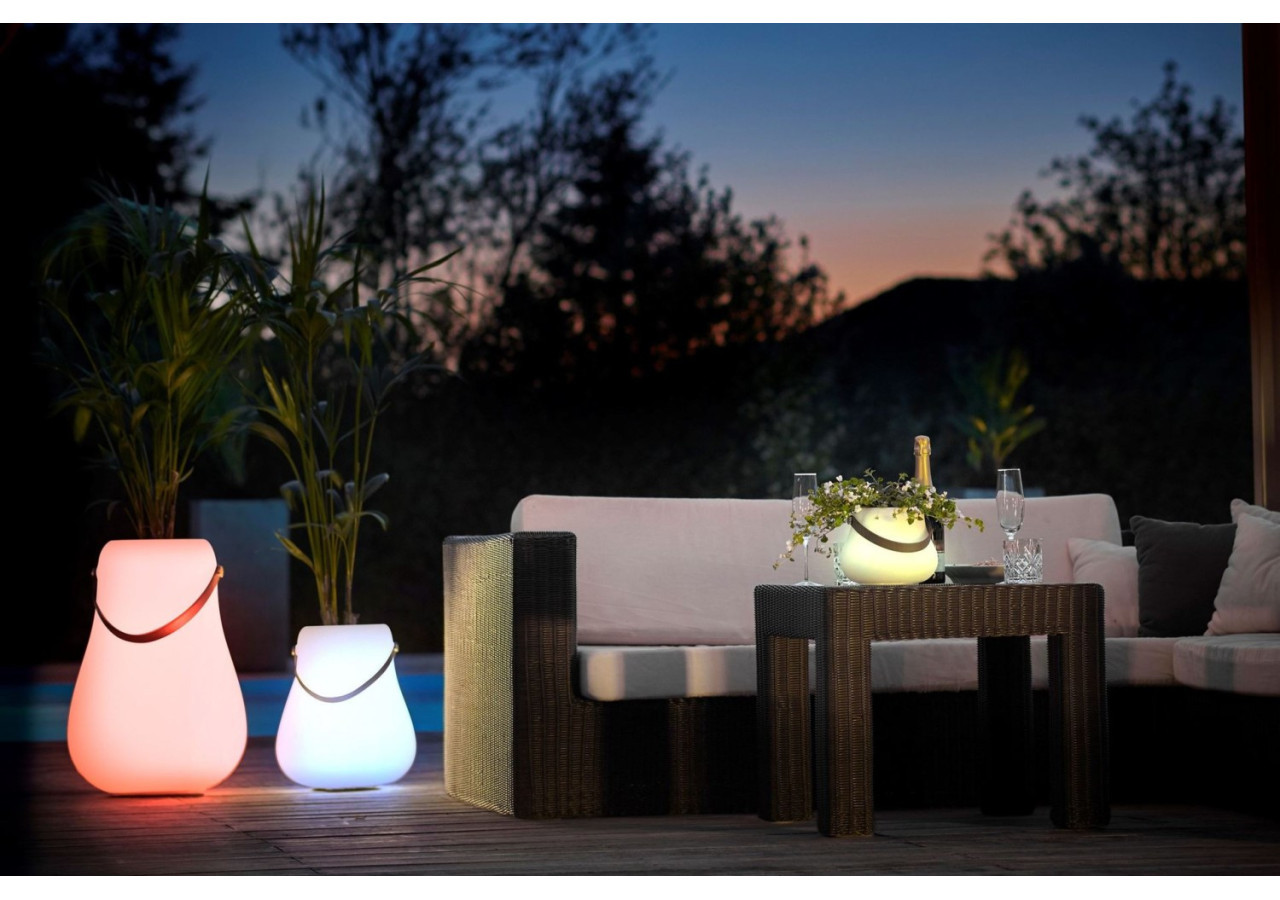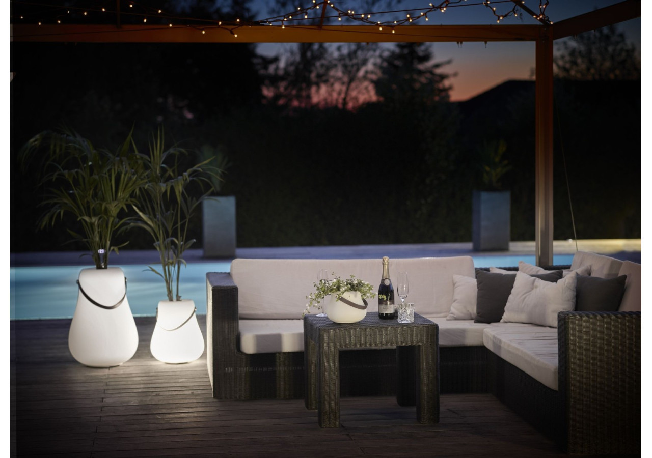 Le pot de fleurs Nordic D'luxx n'est pas qu'un simple pot. Avec ses LED multicolores et son haut-parleur Bluetooth, il apporte une touche moderne à votre intérieur ou extérieur. Utilisez-le pour vos plantes, comme seau à glace ou pour garder vos boissons fraîches.