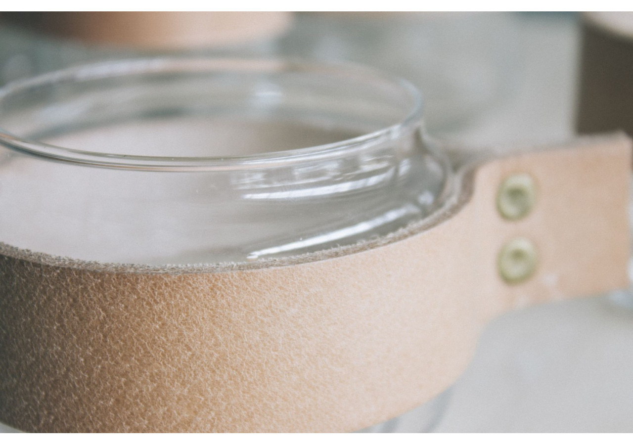 Savourez vos boissons avec style grâce au Verre Wrap Me, orné d'une bande en cuir naturel. Avec des dimensions de 8 x 9 cm, ce verre fait partie d'une série unique comprenant vases et bols.