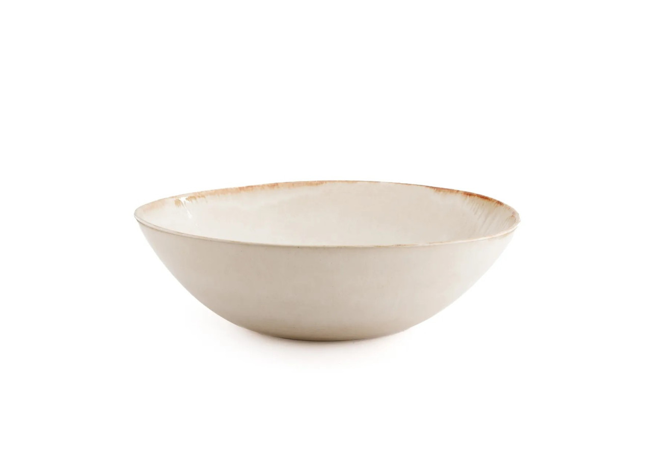 Rien de tel qu'une table joliment dressée pour un brunch, un déjeuner ou un dîner. Notre bol de service Cascais, en céramique portugaise, est un incontournable pour toutes les occasions. La finition blanche avec une touche d'or le rend parfait, que ce soit pour un dîner formel ou un pique-nique d'été.