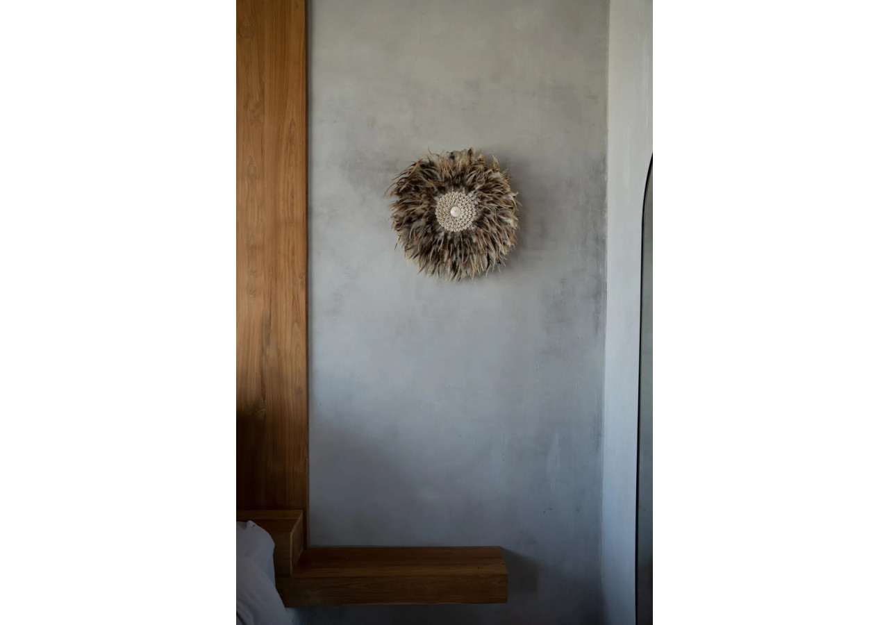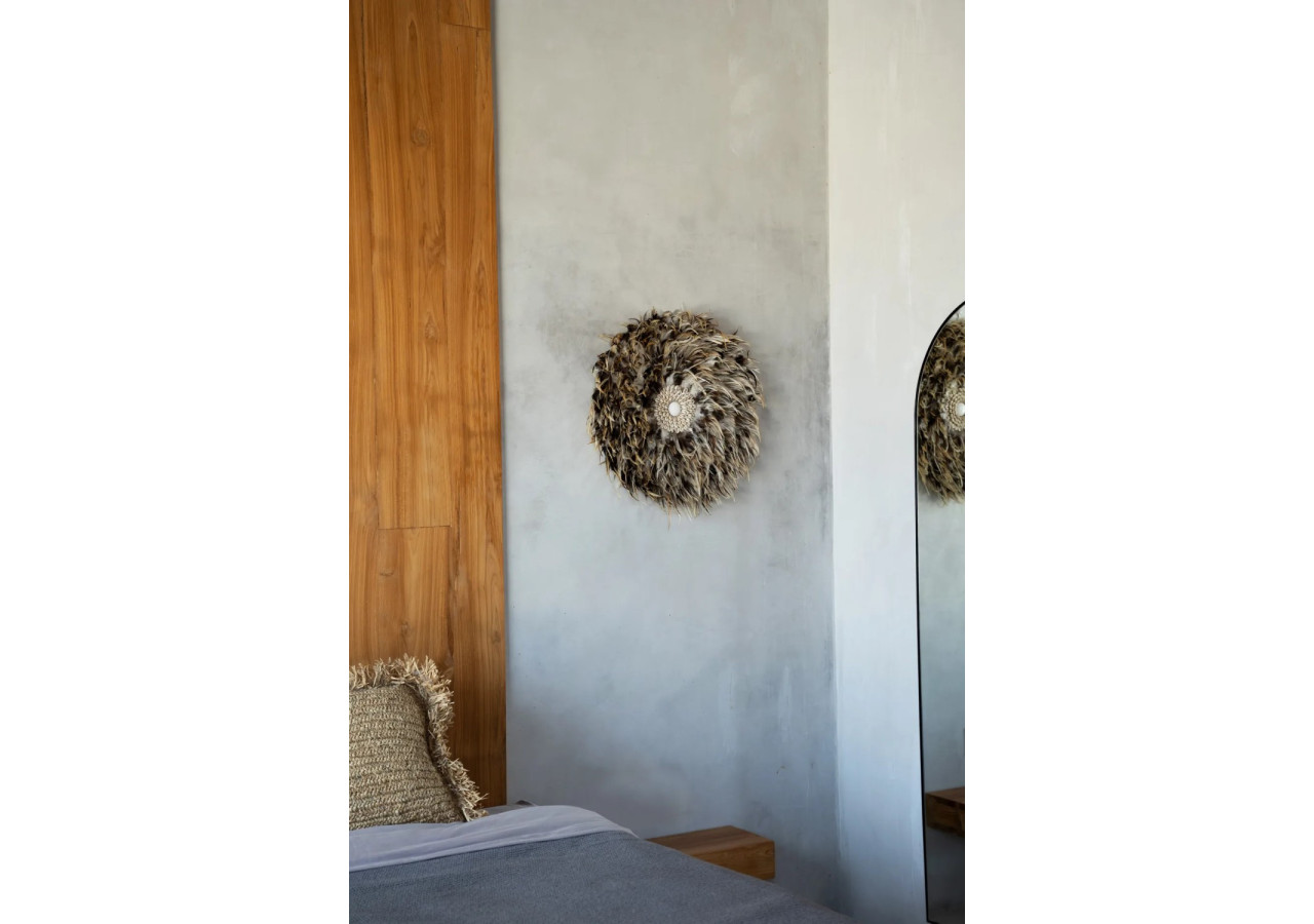 Ajoutez une véritable beauté bohème à vos murs avec notre magnifique affichage de plumes. Parfait pour embellir une salle de séjour, un patio couvert ou un jardin, il est entouré de coquillages délicatement placés à la main, apportant une touche artisanale à votre décoration.