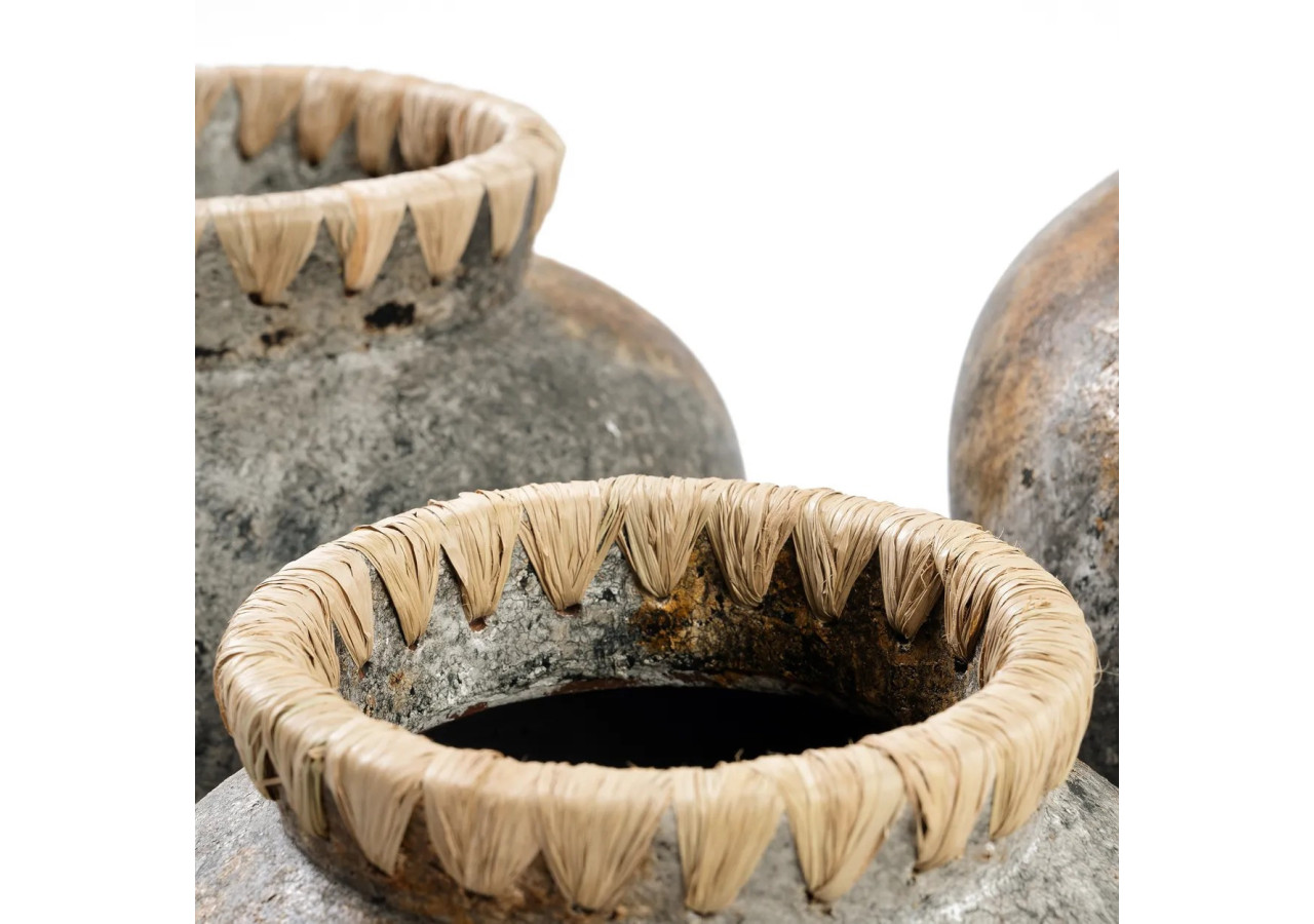 Offrez à vos fleurs séchées le vase qu'elles méritent avec ce chef-d'œuvre en terracotta. Disponible en trois tailles, ce vase se distingue par son détail en raffia qui apporte une touche côtière à votre décoration. Fabriqué à partir d'une belle terracotta aux nuances de gris bleu à rouille, il n'est pas étanche et doit être utilisé uniquement avec des fleurs sèches.