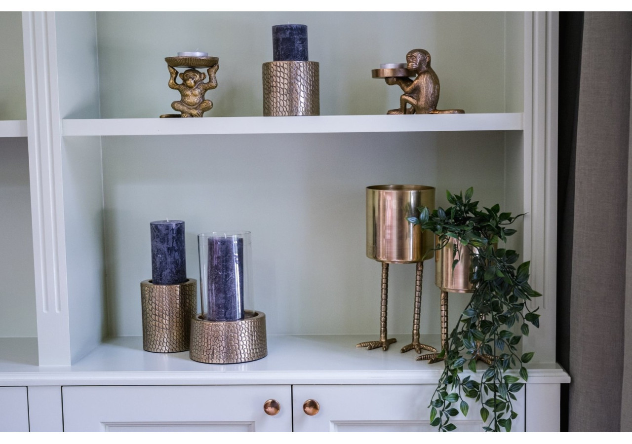Apportez une touche de style à votre salon avec notre support de bougie Croco en laiton. Ce décor élégant, orné d'un motif crocodile, est conçu avec soin pour accueillir une bougie de taille standard, ajoutant charme et sophistication à n'importe quel espace.