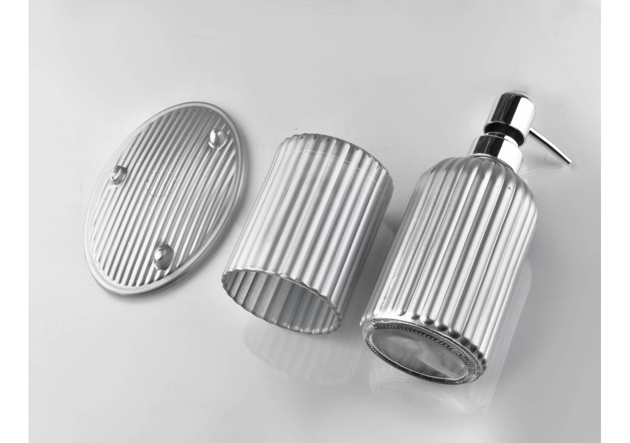 Découvrez l'ensemble de salle de bain ARI SILVER de BATHLAB by MONDEX, un choix parfait pour un intérieur raffiné. Ce set en verre se compose de :
