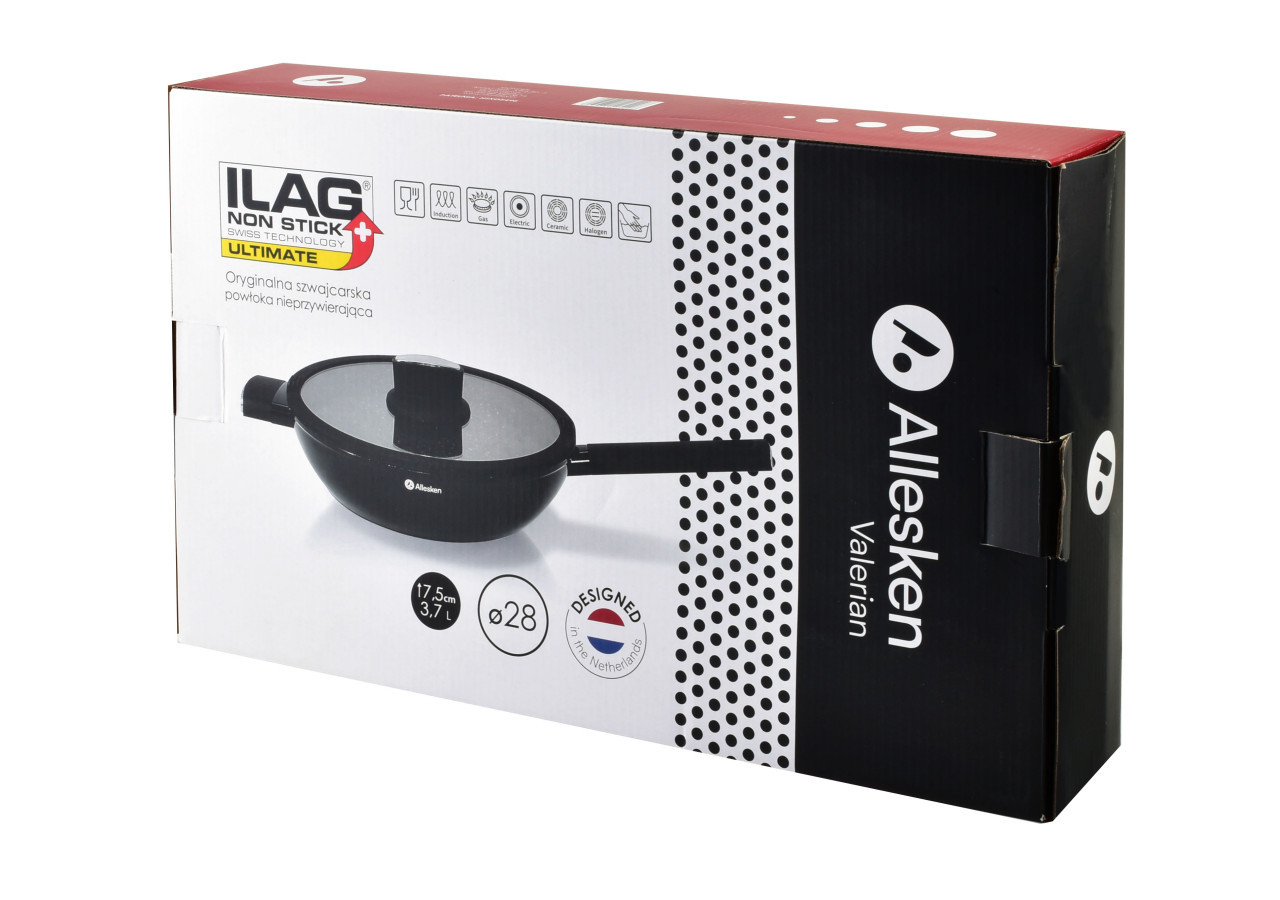 La Poêle VALERIAN de ALLESKEN est la solution idéale pour vos plats. Fabriquée en aluminium résistant jusqu'à 160°C, elle est dotée d'un revêtement ILAG Ultimate NON STICK en trois couches pour une cuisson sans accroche.