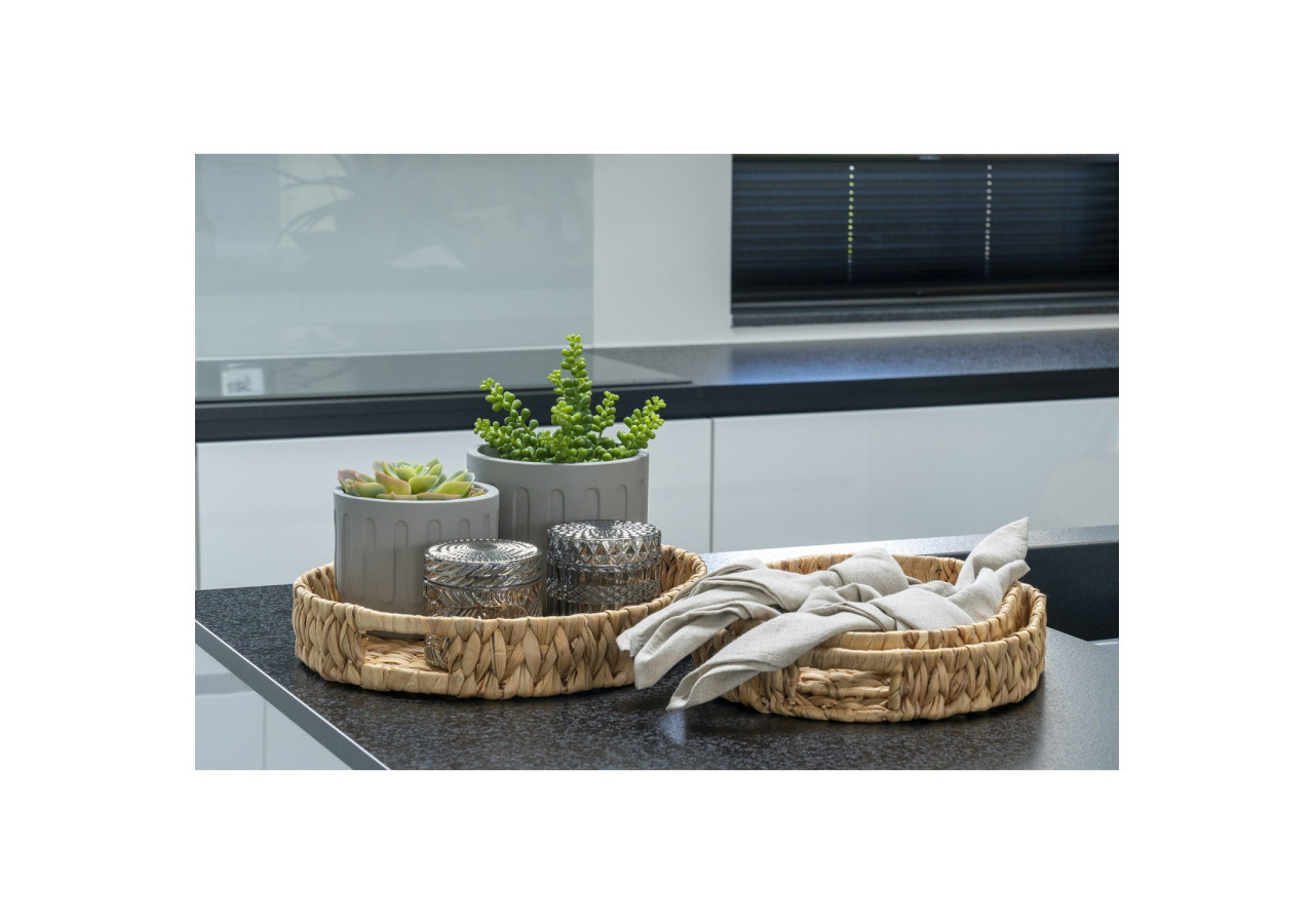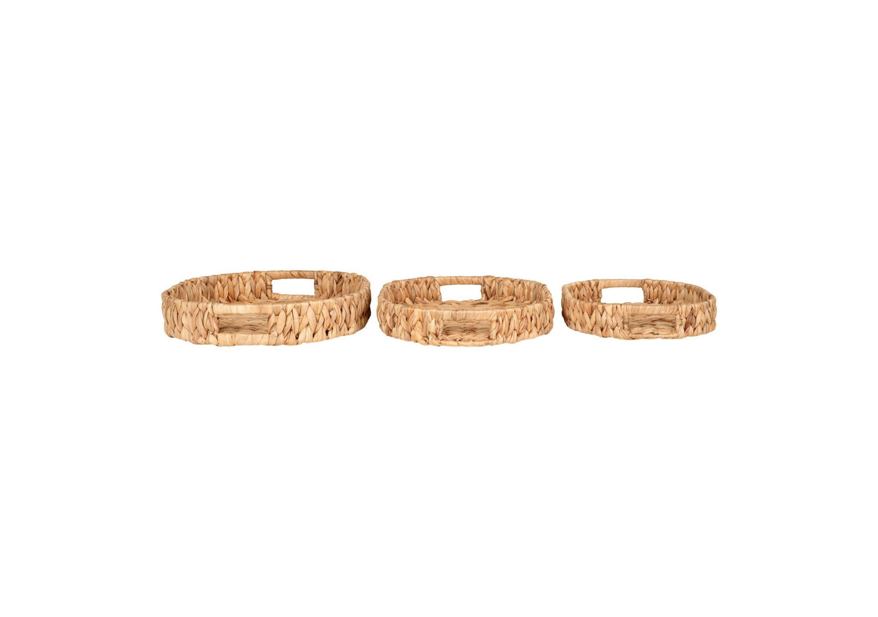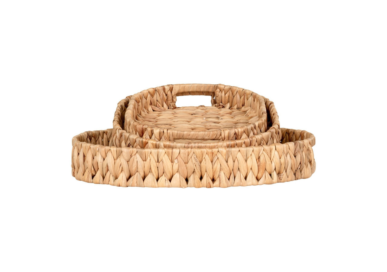 Apportez une touche naturelle à votre maison avec le Plateau Estroil, un ensemble de 3 plateaux ovales en hyacinthe d'eau. Parfaits pour le service ou la décoration, ils sont à la fois légers et esthétiques.