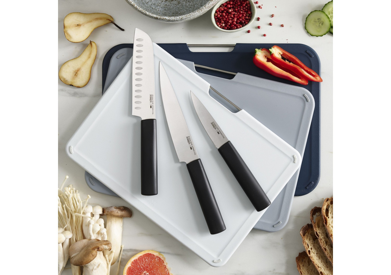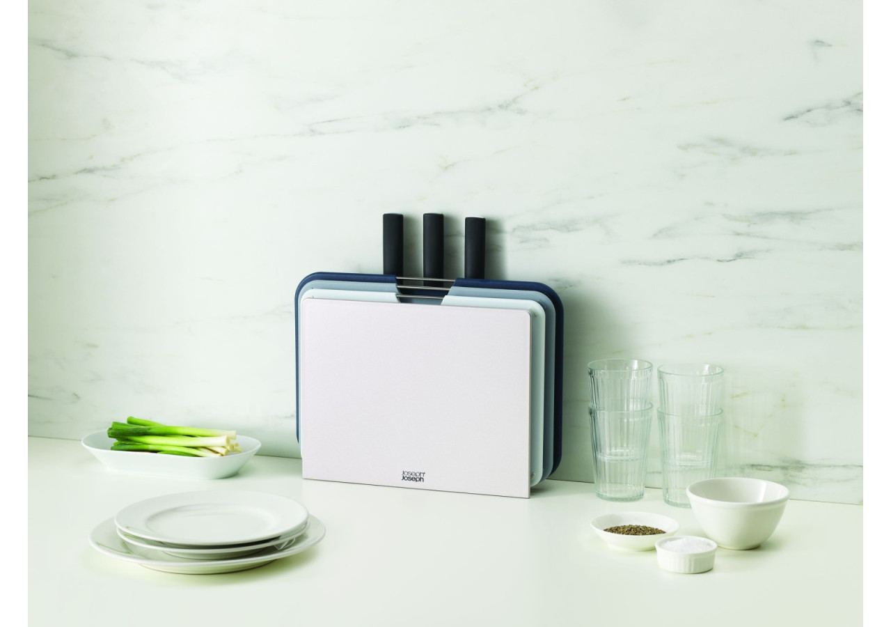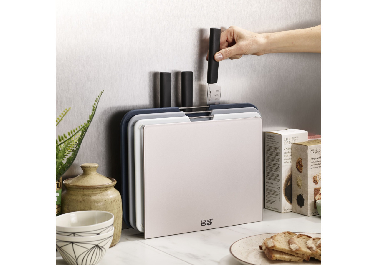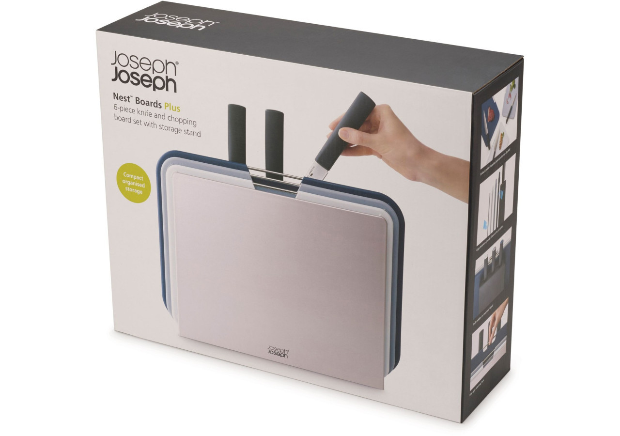 Transformez votre cuisine avec le set de 6 planches à découper de Joseph Joseph. Inclus, trois planches colorées avec des pieds antidérapants et une structure douce pour les couteaux. Le set comprend également un couteau éplucheur, un couteau Santoku et un couteau de chef, tous rangés dans un bloc de couteaux intégré pour un stockage hygiénique.