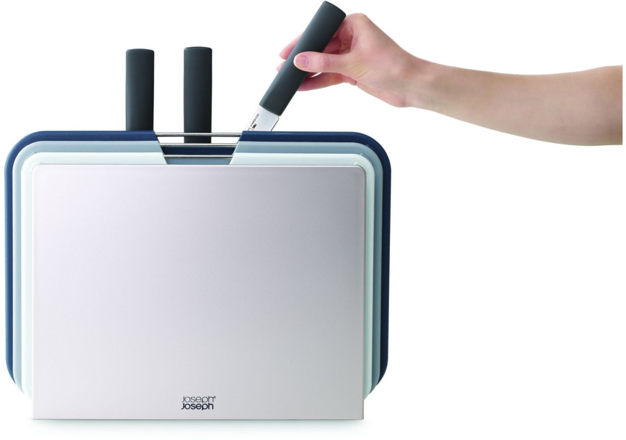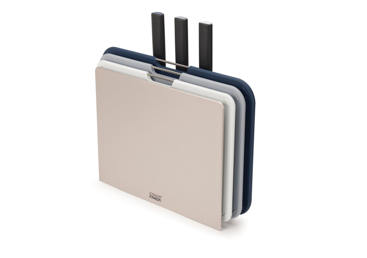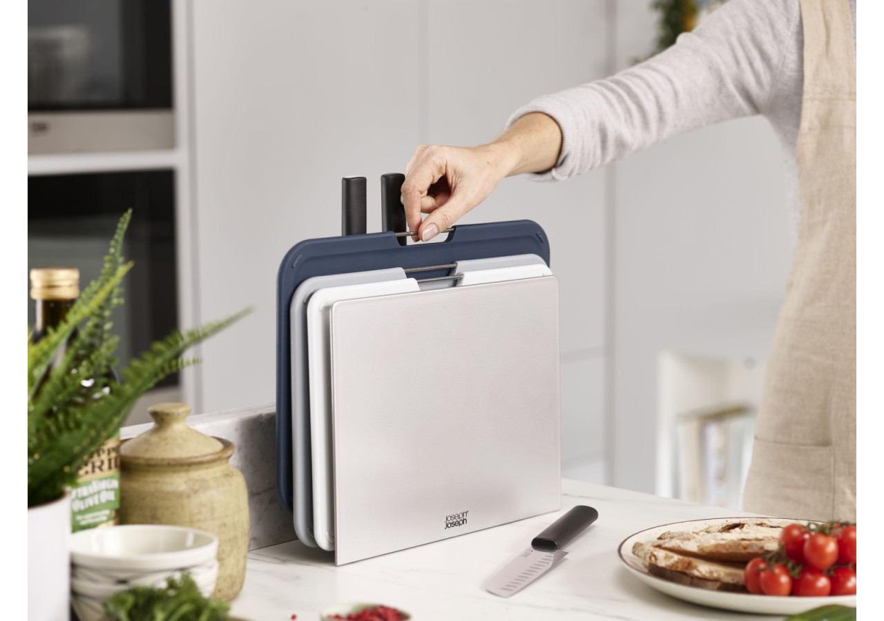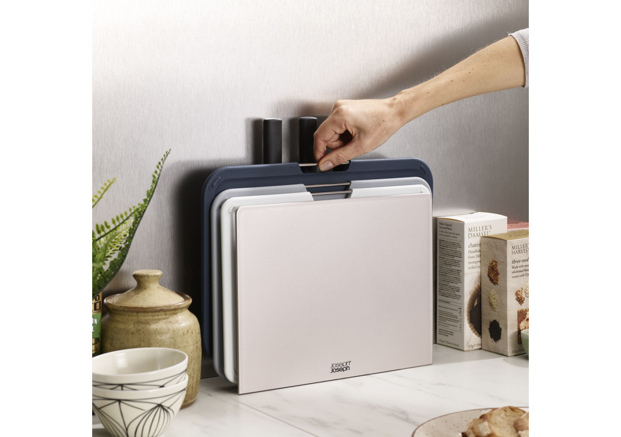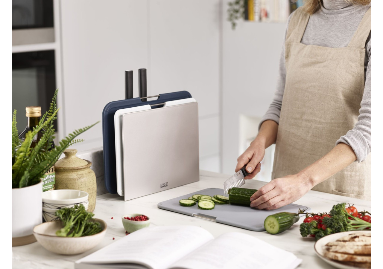 Transformez votre cuisine avec le set de 6 planches à découper de Joseph Joseph. Inclus, trois planches colorées avec des pieds antidérapants et une structure douce pour les couteaux. Le set comprend également un couteau éplucheur, un couteau Santoku et un couteau de chef, tous rangés dans un bloc de couteaux intégré pour un stockage hygiénique.