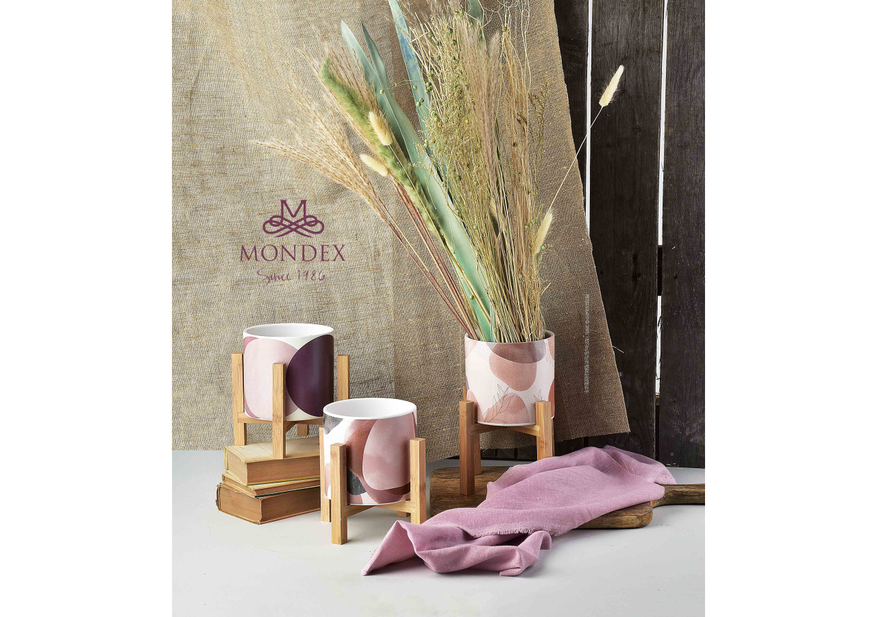 Le pot AVA de MONDEX est l'accessoire idéal pour mettre en valeur vos plantes. Sa conception en céramique et son support en bois apportent une touche moderne à votre intérieur. Mesurant 12,5 cm de diamètre et 16,5 cm de hauteur, il est parfait pour tous les espaces.