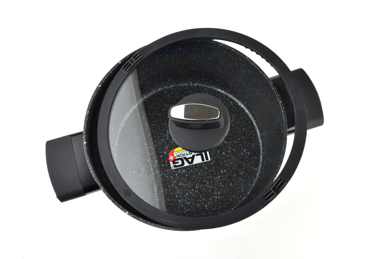 Découvrez la Casserole VALERIAN de la marque ALLESKEN, conçue en aluminium résistant jusqu'à 160°C. Sa revêtement ILAG Ultimate NON STICK innovant en trois couches garantit une cuisson sans accroche pour vos plats préférés.