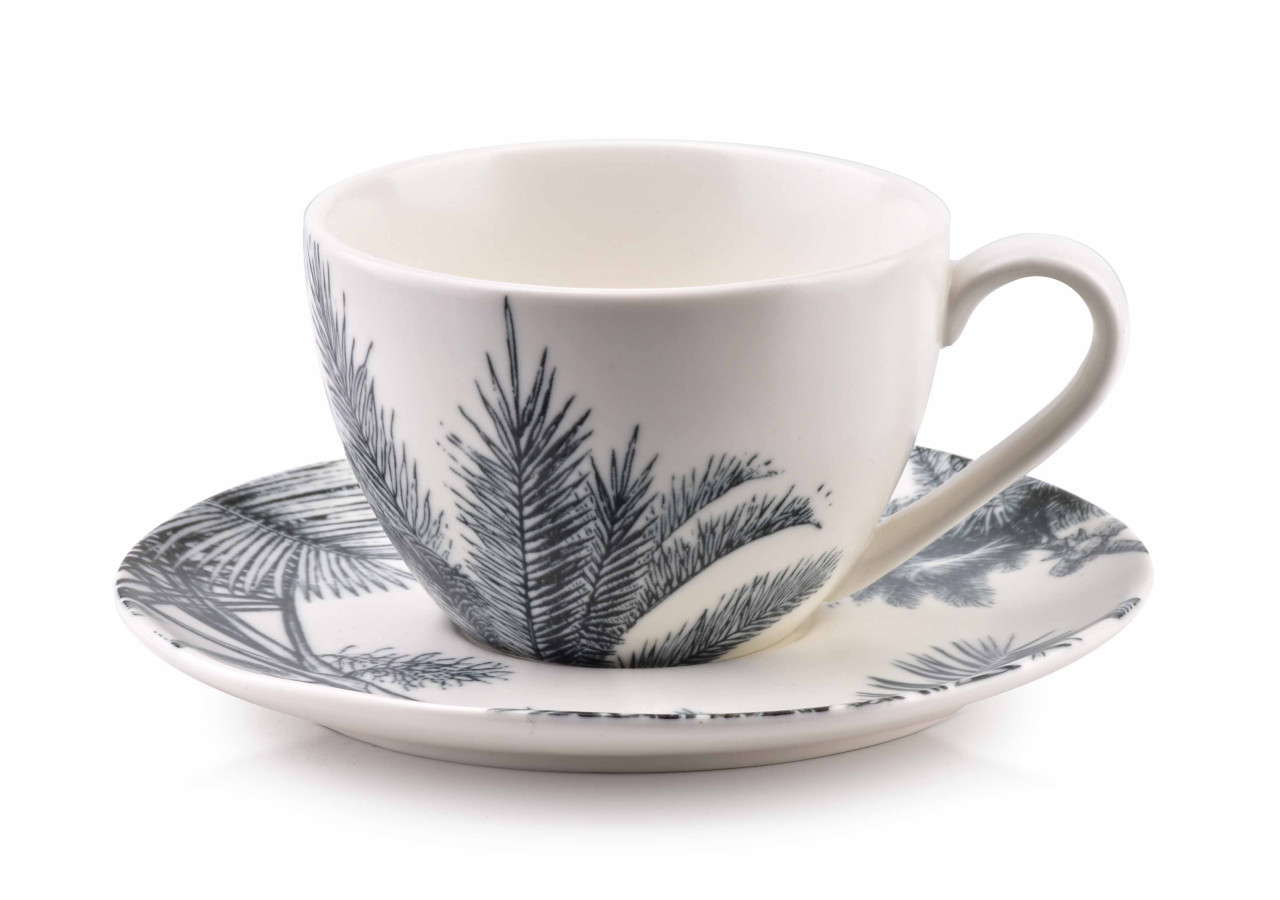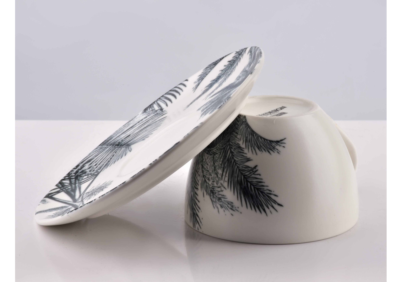Appréciez votre café dans la tasse TROPICAL de AFFEK DESIGN. Élégante avec son émaillage mat et son motif blanc-gris, cette tasse a une capacité de 250ml. La soucoupe mesure 15.5cm de diamètre. Lavable au lave-vaisselle et compatible avec le micro-ondes.