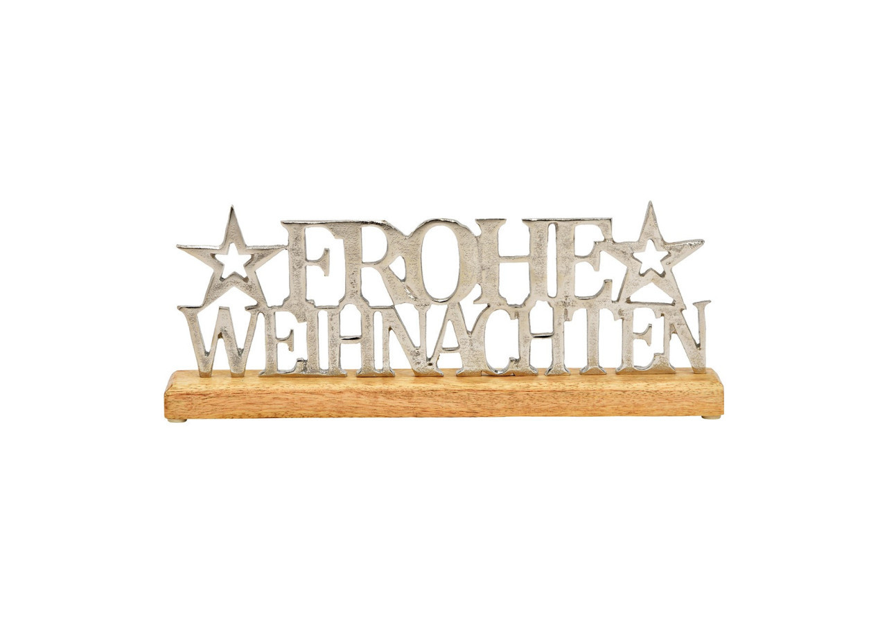 Célébrez la magie des fêtes avec ce panneau décoratif 'Joyeux Noël' sur un socle en bois de mangue. Mesurant 36x14x5cm, son design élégant en métal argenté apporte une touche moderne et chic à votre intérieur. Une pièce incontournable pour illuminer votre décor pendant les fêtes.