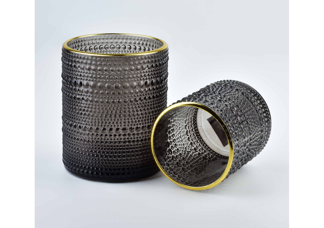 Apportez une touche de modernité avec le bougeoir RITA GREY de MONDEX. Son design en verre avec une finition grise et une bordure dorée crée une ambiance chic et élégante. Sa robustesse assure une durabilité tout en diffusant une lumière apaisante qui embellit n'importe quel espace, que ce soit à l'intérieur ou à l'extérieur.