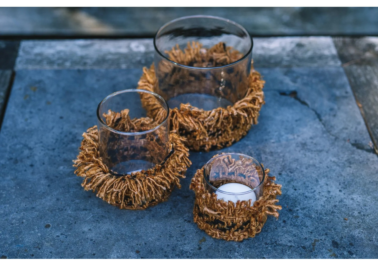 Ajoutez une touche chaleureuse à votre intérieur avec notre Bougeoir Oh My Gee en velours cannelle B XL. Fabriqué en verre et enveloppé d'un jersey en velours, il s'harmonise parfaitement avec nos plaids et coussins. Créez une ambiance unique en mélangeant les couleurs et motifs de notre collection.