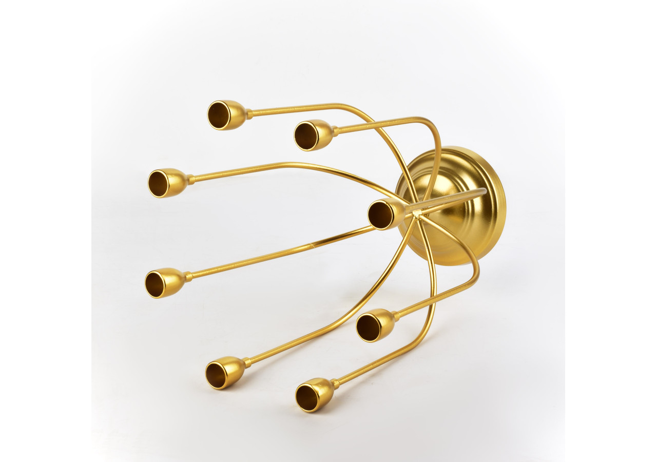 Le bougeoir CEDRIC GOLD de MONDEX est un magnifique accessoire pour vos soirées. Avec des dimensions de 27x11,5xh32cm, il est conçu pour accueillir 8 bougies, apportant une ambiance chaleureuse et accueillante à votre intérieur. Son design sophistiqué en métal doré ajoute une touche d'élégance à chaque occasion. Poids : 752g.