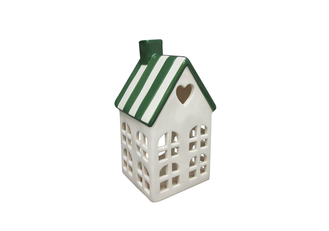 Découvrez le lampion Hytte, une décoration en céramique unique qui apportera du charme à chaque intérieur. Fabriqué en céramique de haute qualité, ce lampion adorable de couleur blanche avec un toit à rayures vert et blanc s'intègre parfaitement dans diverses ambiances décoratives, allant du moderne au rustique.