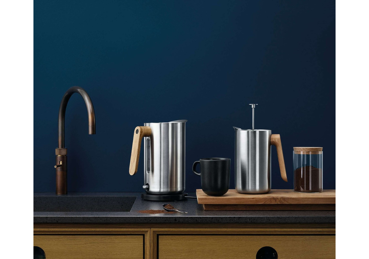 Apportez une touche scandinave à votre pause café avec la cafetière thermo Nordic Kitchen. Fabriquée en acier inoxydable avec un élégant poignée en bois de chêne, elle garde votre café chaud plus longtemps grâce à sa fonction de thermos.