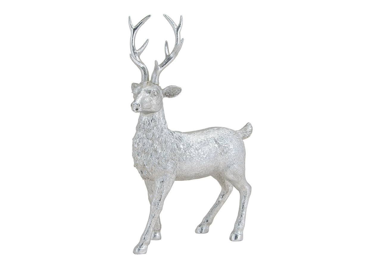 Ajoutez une touche d'élégance à votre intérieur avec ce cerf argenté. Conçu en poly, ses dimensions de 24x10x36cm en font un élément décoratif idéal pour les fêtes de fin d'année ou tout autre moment festif. Son aspect brillant attirera tous les regards et embellira votre décoration.