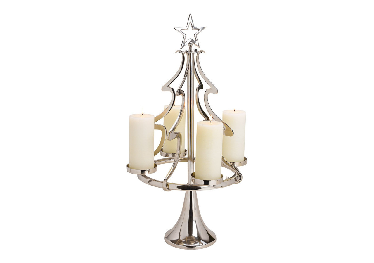 Embellissez votre intérieur avec cette couronne de l'Avent en forme de sapin. Fabriquée en métal argenté, elle mesure 48 x 86 x 48 cm et est parfaite pour marquer le temps de l'Avent avec style et élégance.