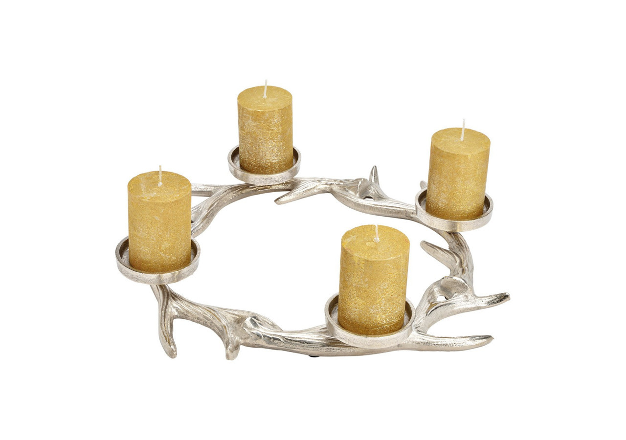 Préparez-vous pour les fêtes avec notre couronne de l'Avent en métal argenté. Ses dimensions de 46 x 6 x 46 cm en font un élément central parfait pour votre décoration de Noël, ajoutant une touche chic à votre ambiance.