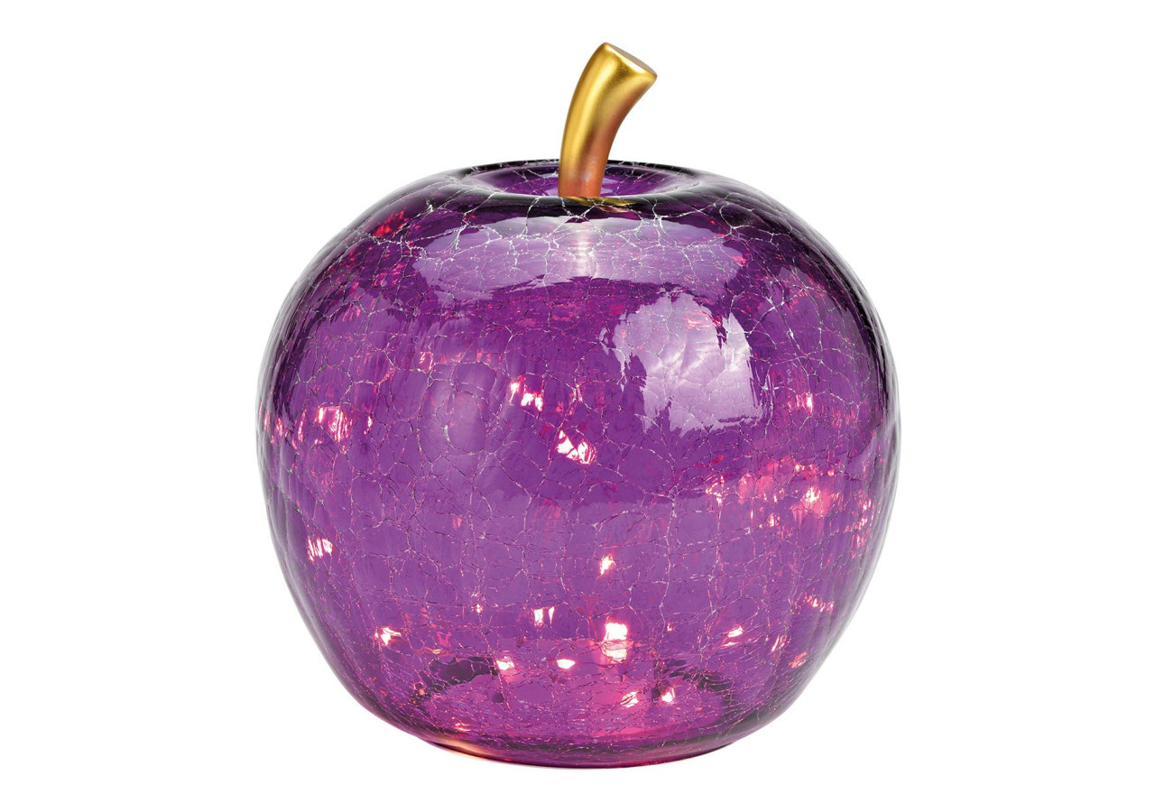 Cette pomme en verre violet foncé de 22x24x22cm, avec 30 LED et un timer, est parfaite pour apporter une ambiance cosy. Un choix décoratif qui s'intègre facilement dans tout style d'intérieur.
