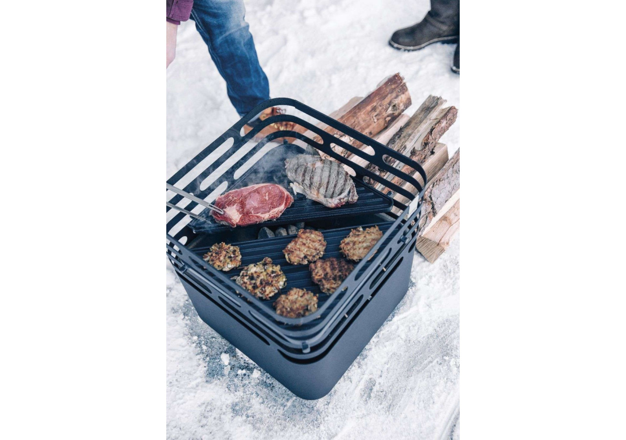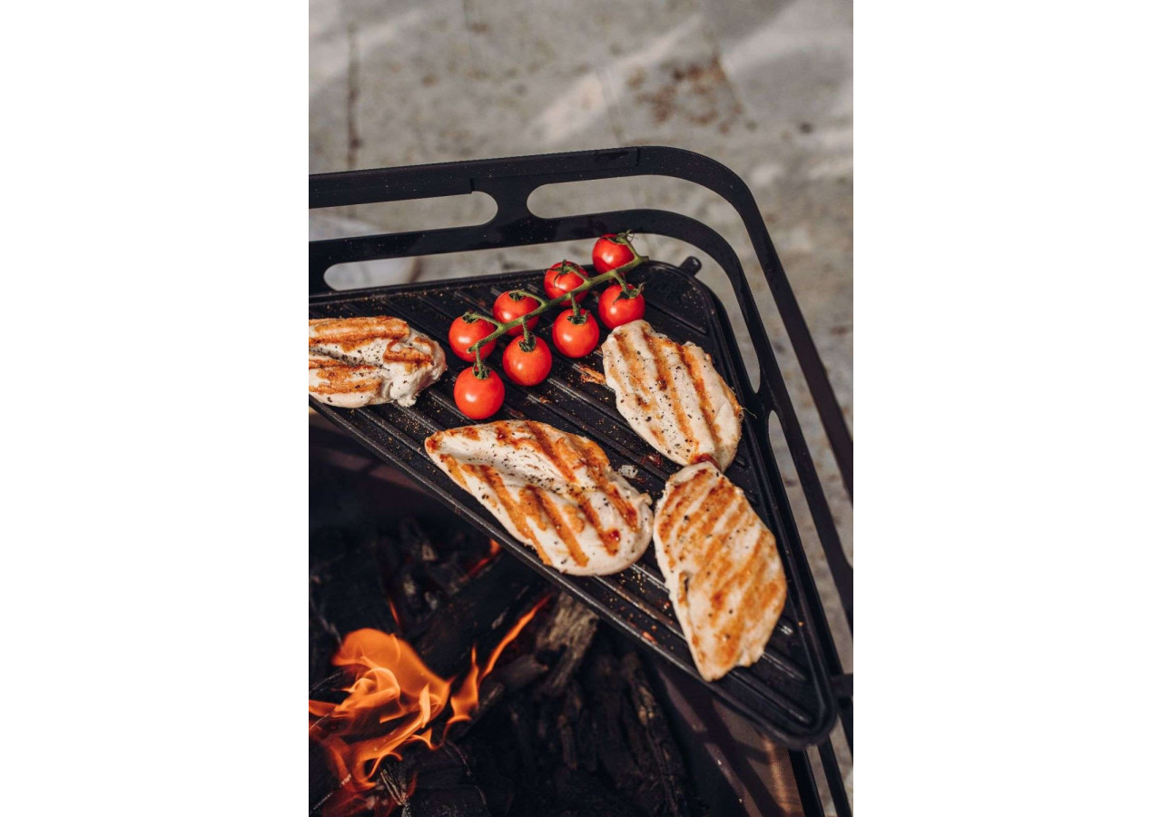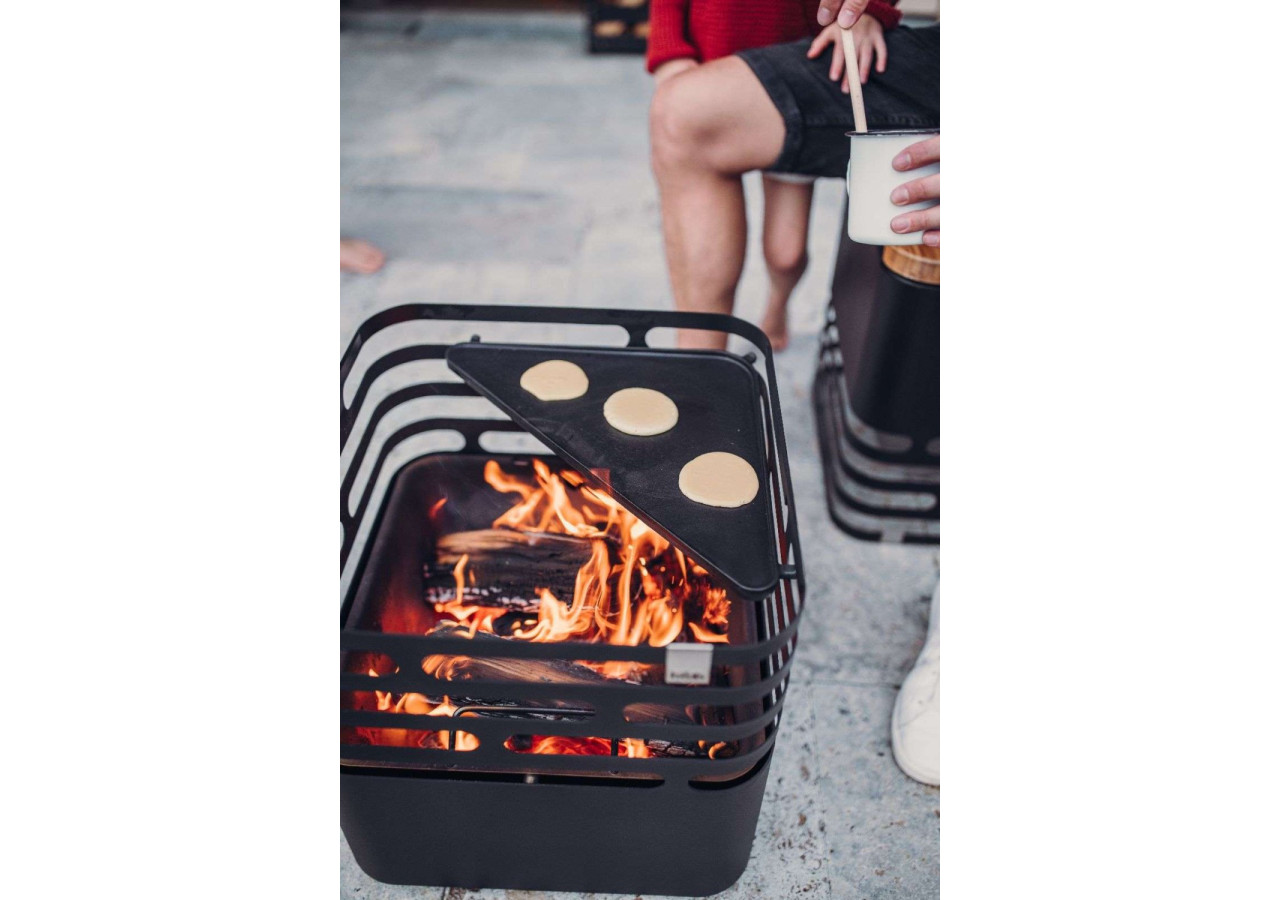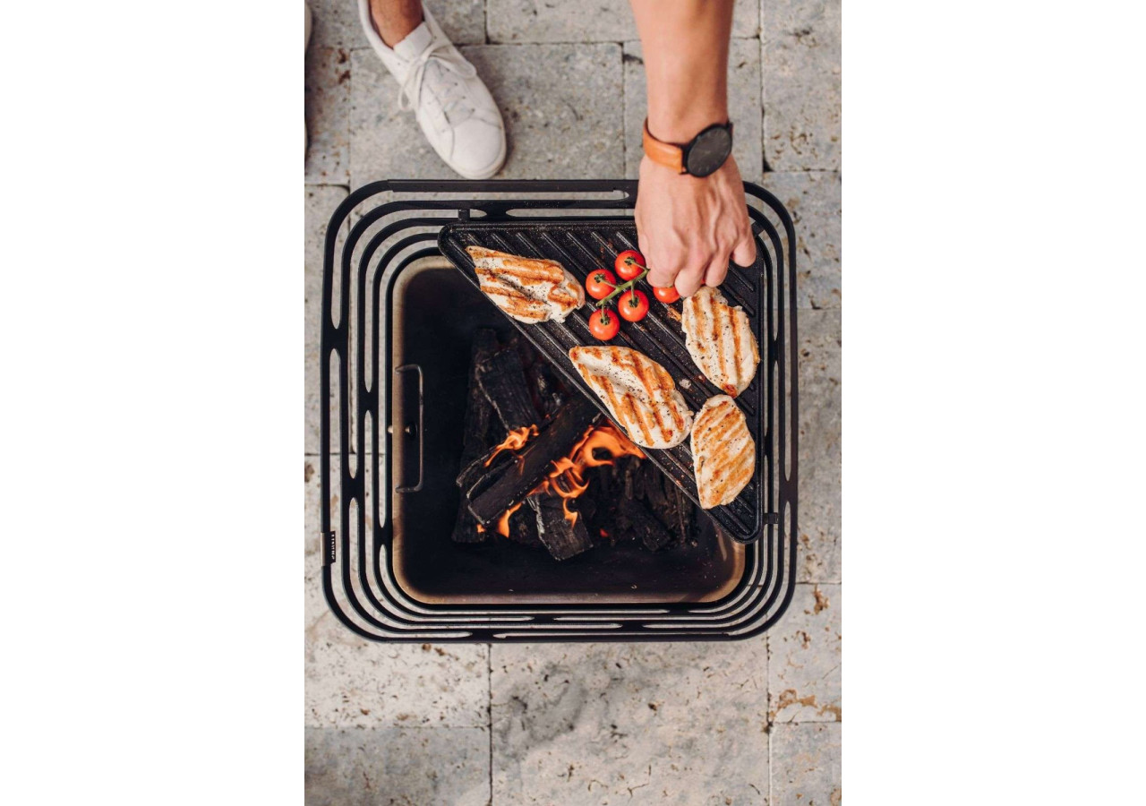 Transformez votre Cube Vuurkorf Höfats en grill avec la plaque plancha en fonte émaillée. Idéale pour cuire viande, légumes et bien plus, elle se fixe facilement au cube à la hauteur souhaitée.