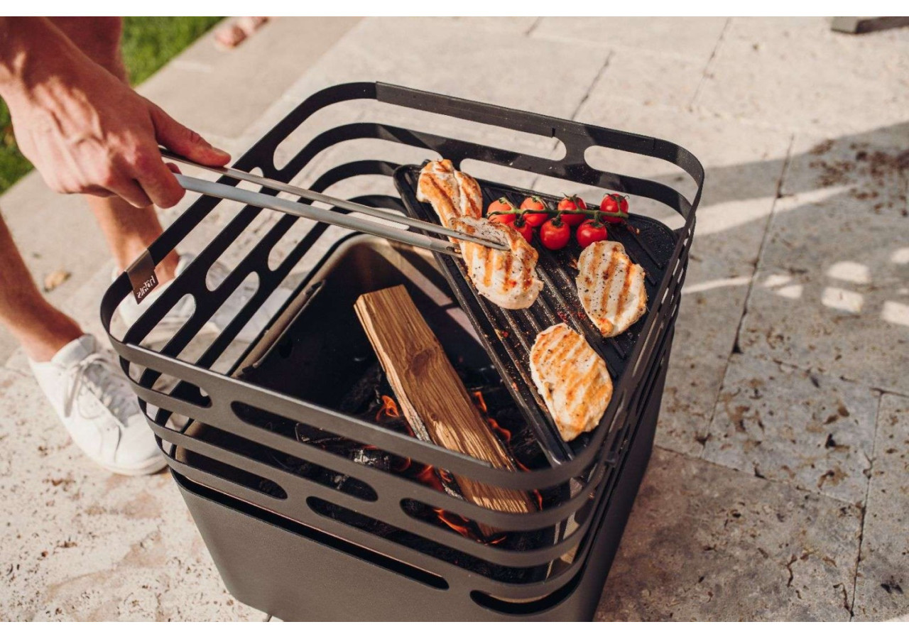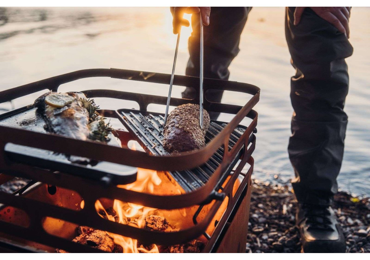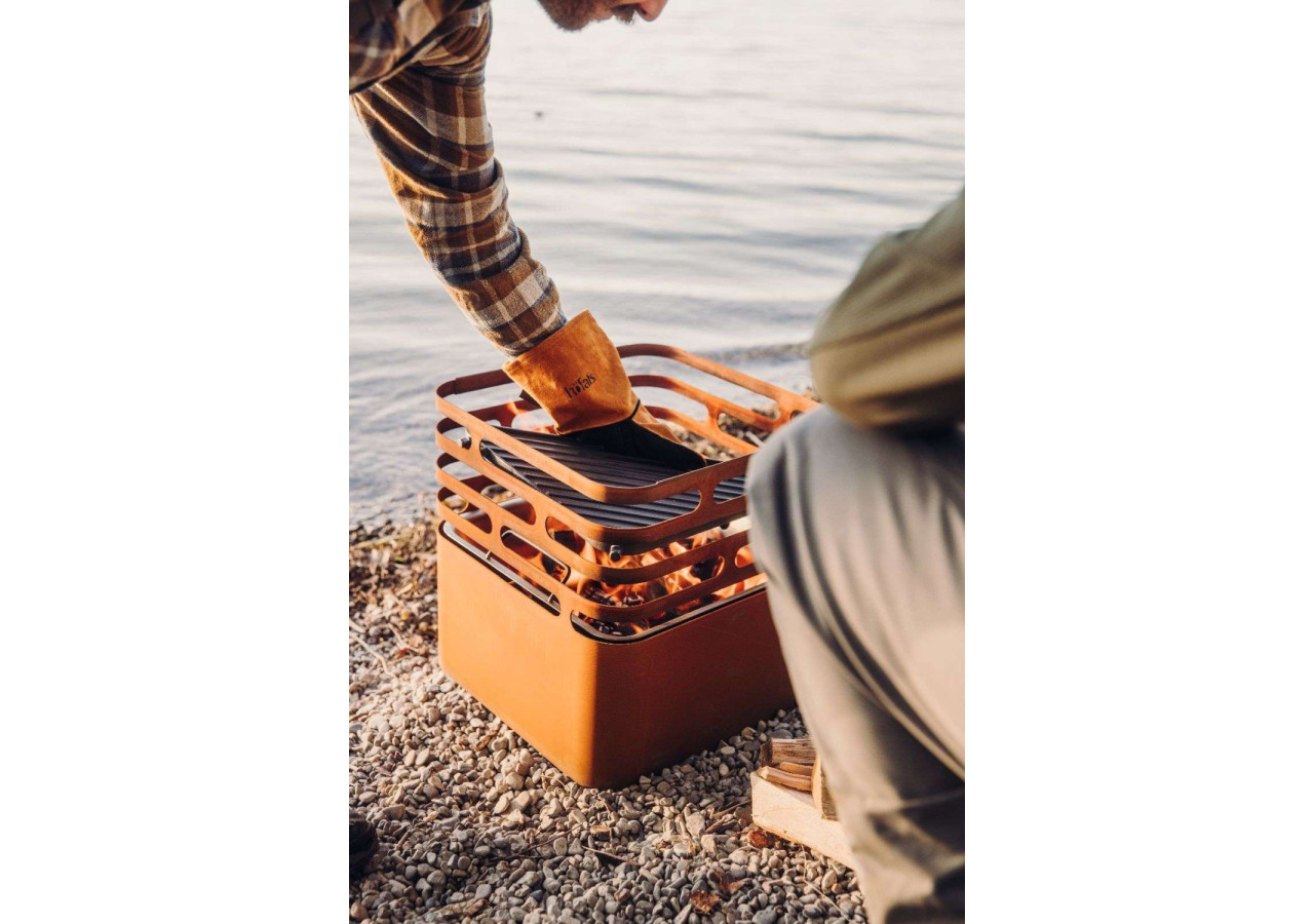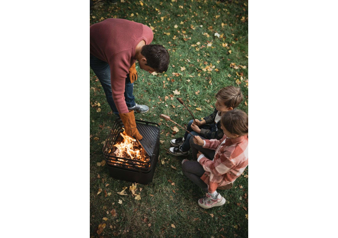 Transformez votre Cube Vuurkorf Höfats en grill avec la plaque plancha en fonte émaillée. Idéale pour cuire viande, légumes et bien plus, elle se fixe facilement au cube à la hauteur souhaitée.