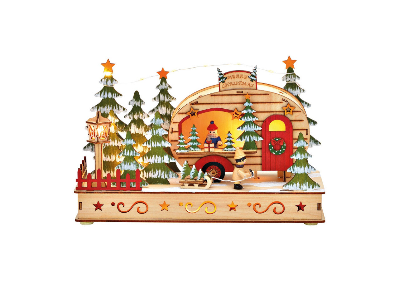 Revivez la magie des fêtes avec cette scène hivernale en bois dotée d'un wagon de Noël LED. Ses dimensions de 28x18x10cm en font un élément charmant pour votre décoration de Noël.
