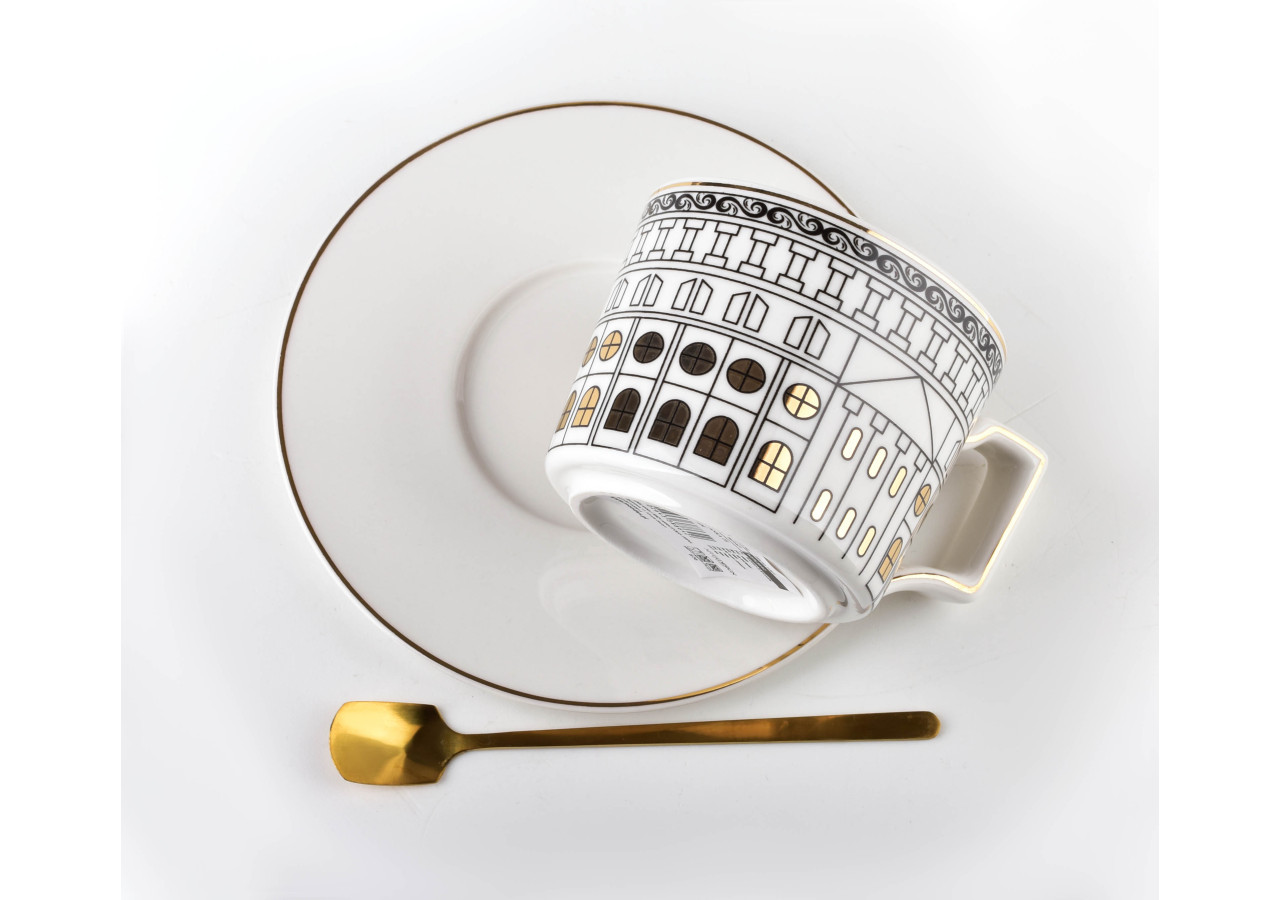 Cette tasse en porcelaine OTIS de 220ml, élégamment accompagnée de sa soucoupe, présente un design chic et unique. Avec ses finitions dorées et son emballage sophistiqué, elle fait un cadeau parfait, tout en étant non adaptée au lave-vaisselle et au micro-ondes.